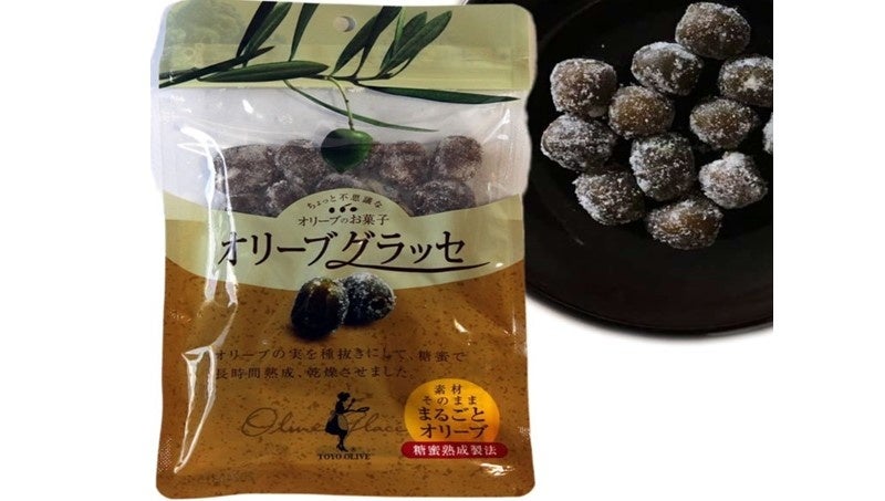 保存と渋抜きのために塩漬けされたオリーブの実から塩を抜き、糖蜜につけこんで熟成させながら作られるオリーブグラッセ。