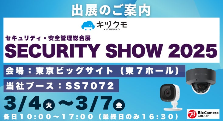 ビックカメラグループの株式会社ラネット(本社:東京都豊島区、以下「ラネット」)は、月額770円(※スタンダードプラン16台以上導入時。初期費用別途。)から始められるネットワークカメラサービス「キヅクモ」を提供しています。このたび、2025年3月4日(火)~3月7日(金)に東京ビッグサイトで開催される「SECURITY SHOW 2025」に出展することをお知らせいたします。