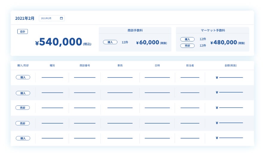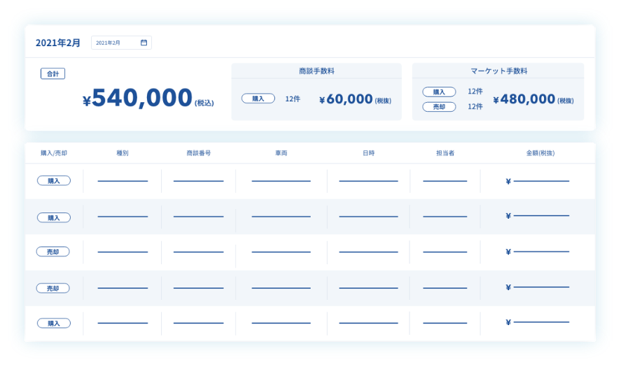 ⑥利用状況:マーケット売買による収益を集計して一括管理