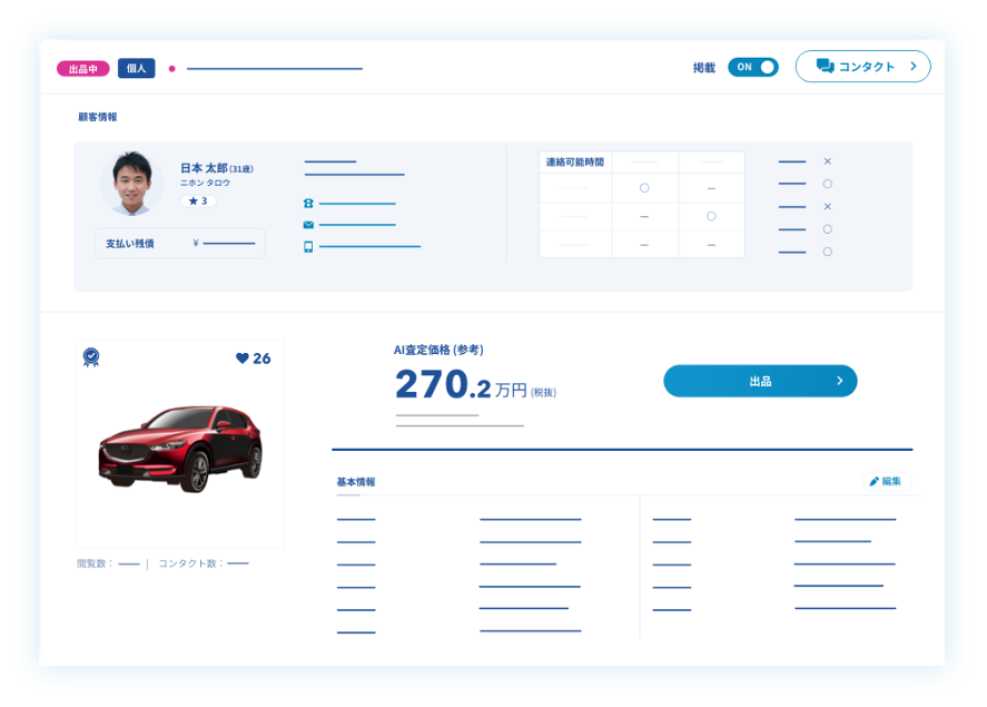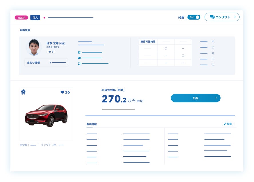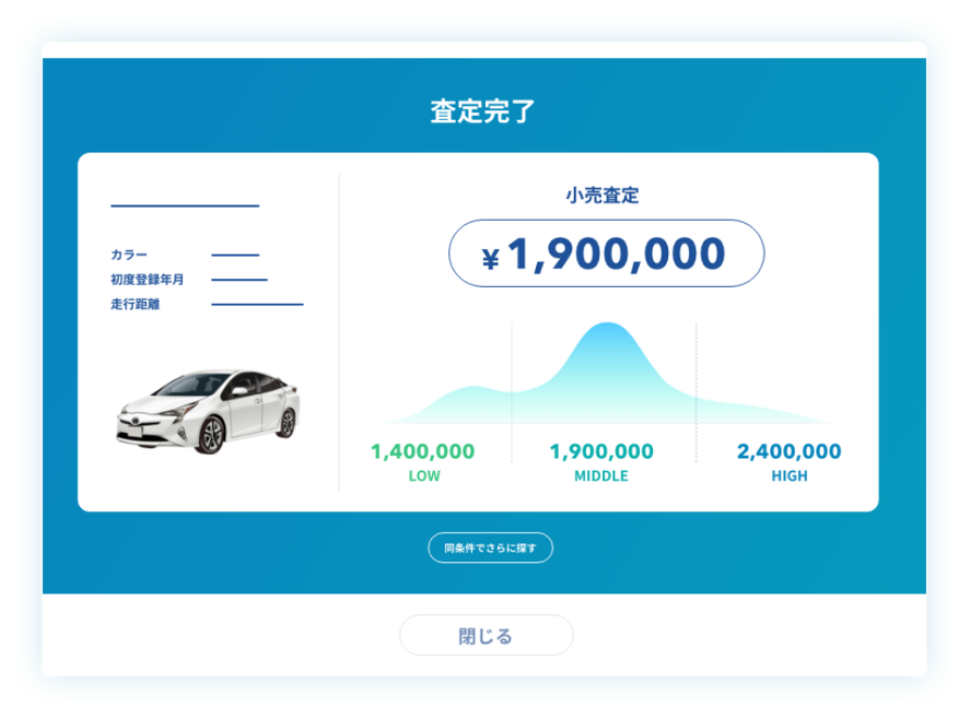 ①AI査定:売却車両の小売相場をAIで自動算出