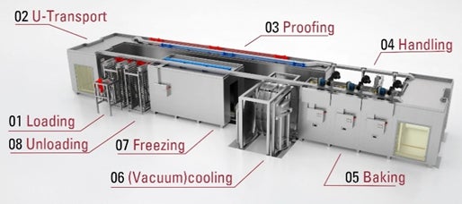【 概要 】ラックローディング→ホイロ→焼成→冷却→冷凍→ア