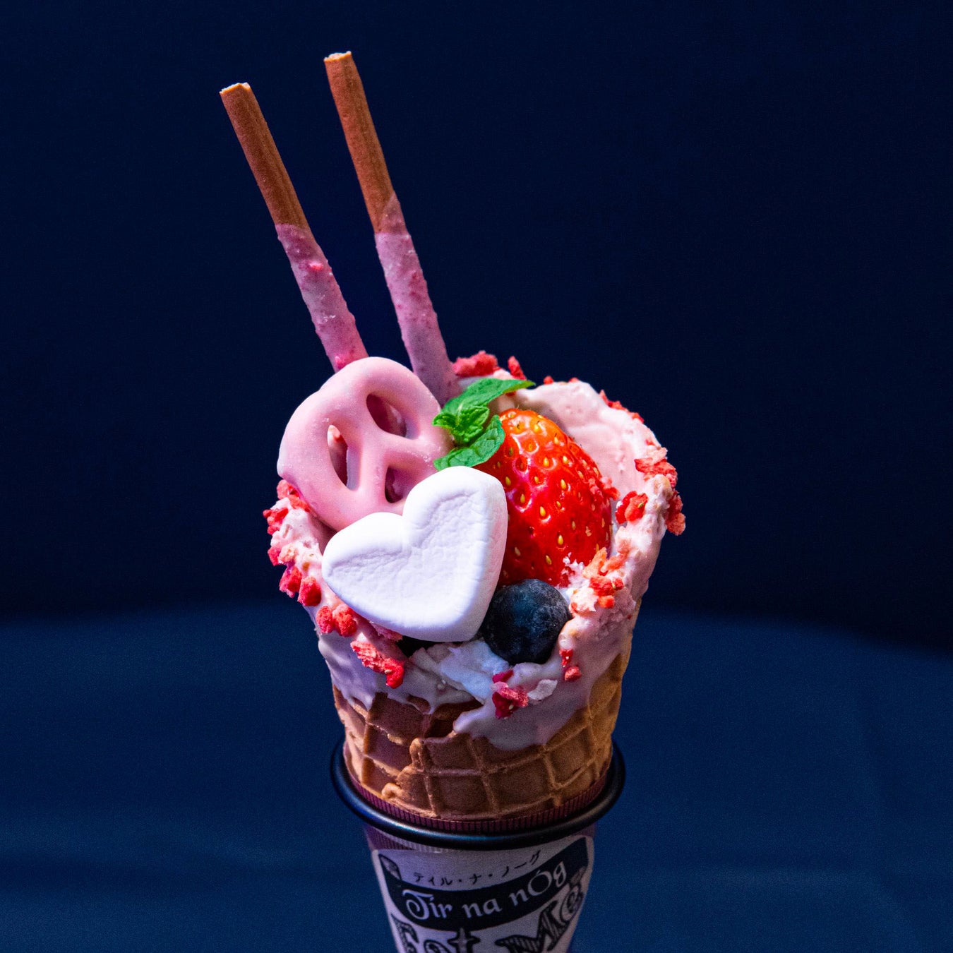 香ばしいベリーやお菓子を詰め合わせた満足感たっぷりのデザート。見ても楽しい、食べて美味しい、アリスの世界観をより引き立てるスイーツに仕上げました。