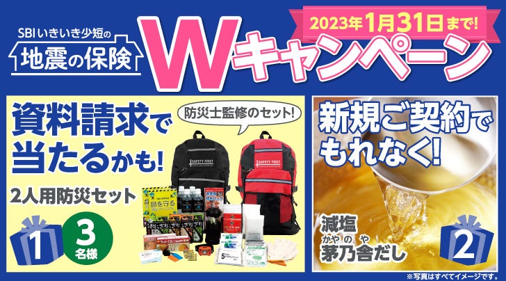 SBIいきいき少額短期保険株式会社(本社:東京都港区、代表取締役社長:新村 光由、以下「当社」)は、地震補償保険の資料請求をされた方、および新規ご契約いただいた方、それぞれを対象としたプレゼントキャンペーンを実施します。