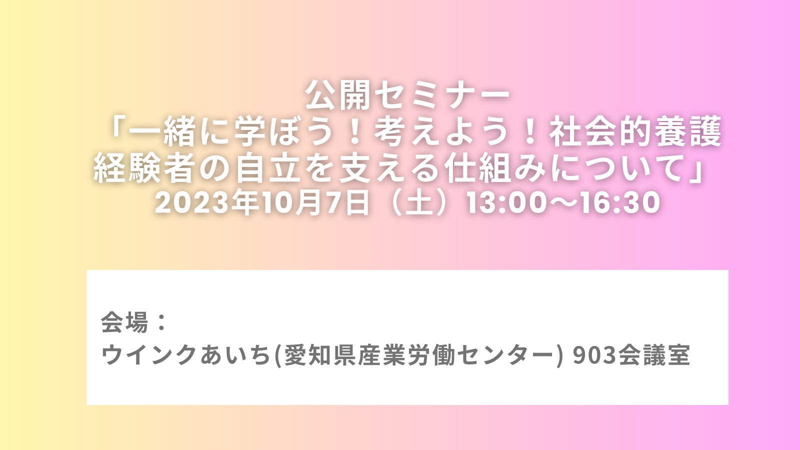 【同朋大学】10月7日(土) 公開セミナー「一緒に学ぼう!考えよう!社会的養護経験者の自立を支える仕組みについて」のお知らせ