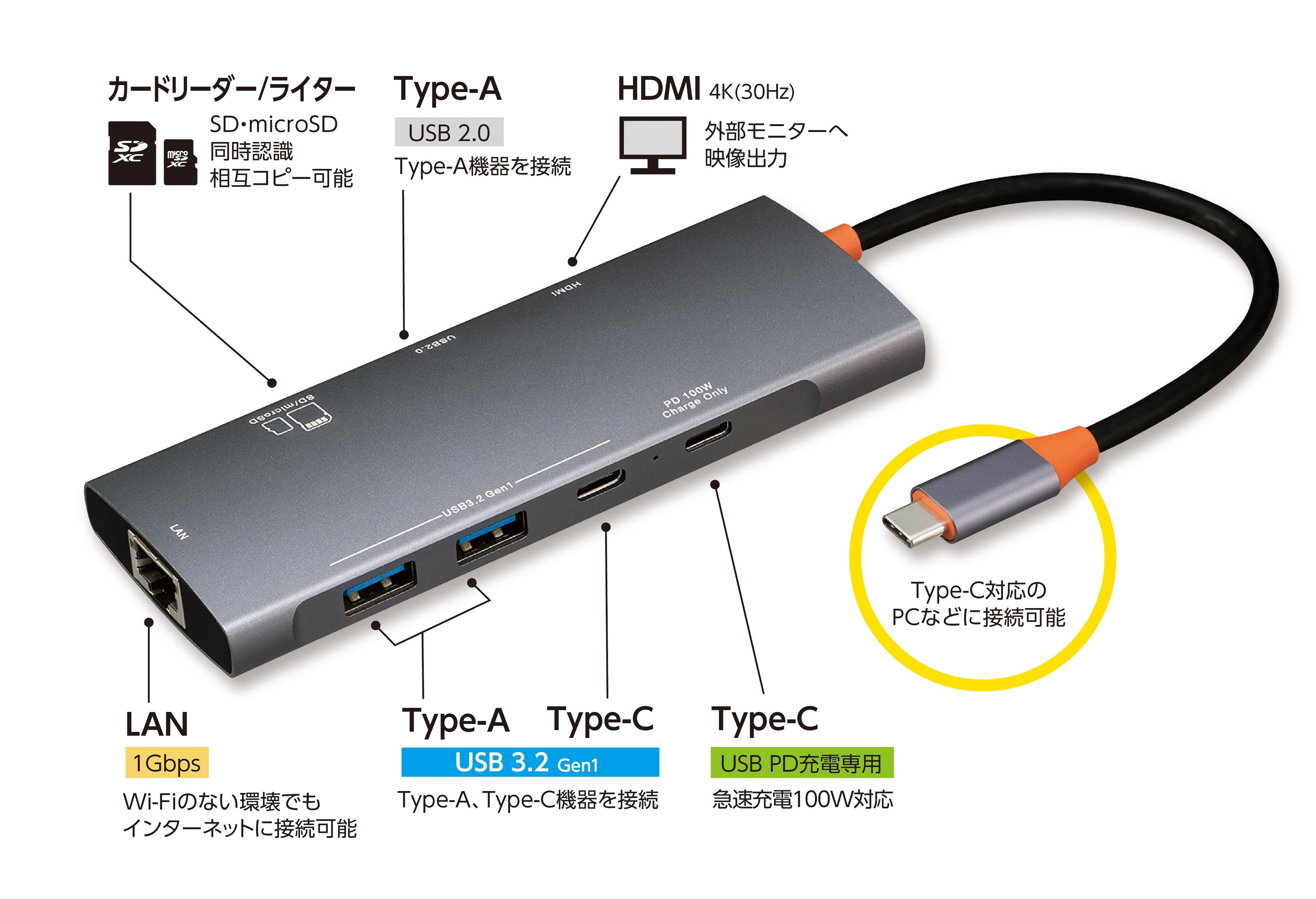 映像出力やLAN接続など、9つの機能をこれ1つに!9つの機能を一つにまとめた「PD対応 Type-C 9in1 アルミドッキングステーション」を発売