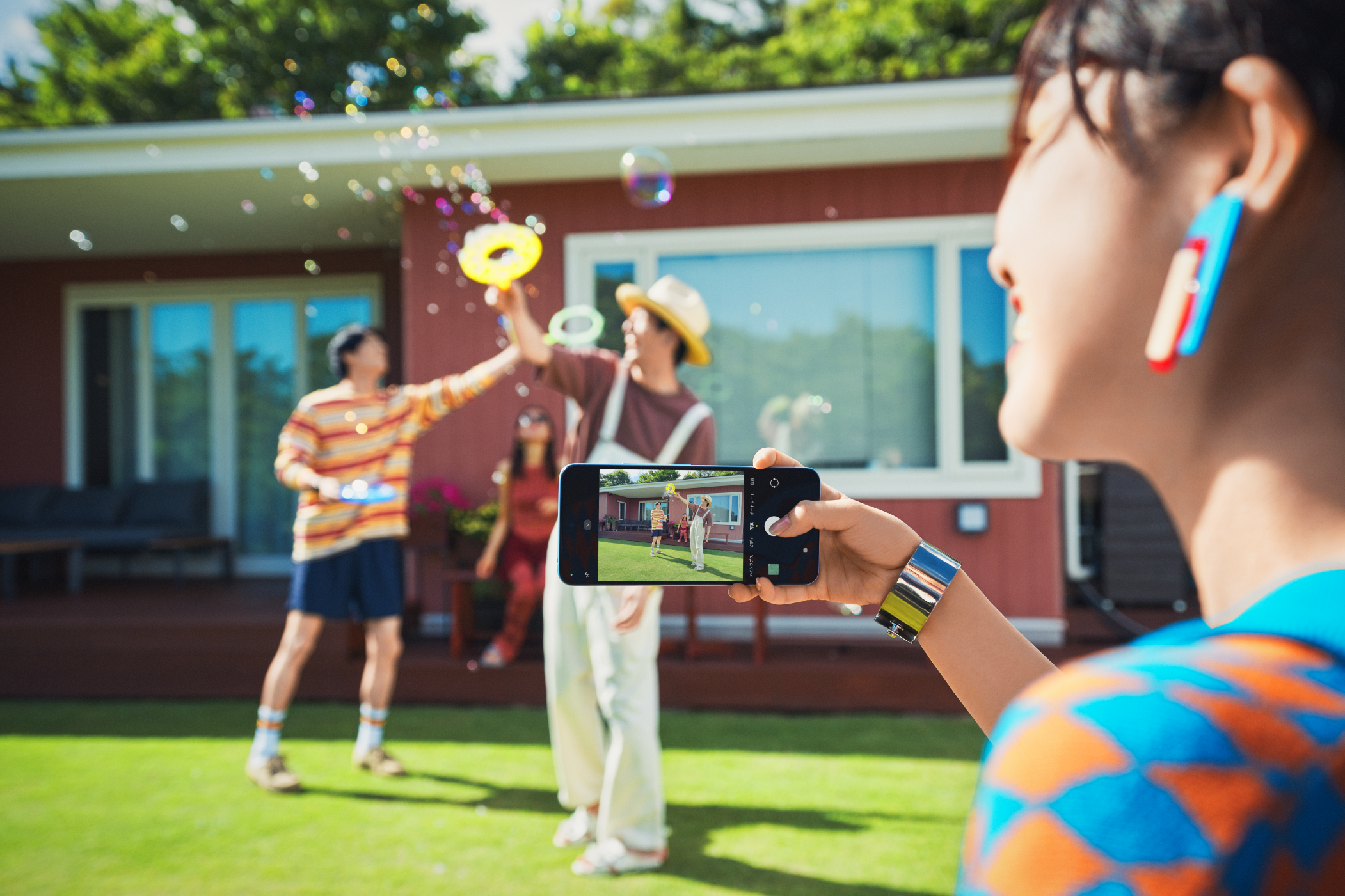 約200万画素の深度センサーと組み合わせて、きれいな背景ボケを表現した写真も撮影できます。さらに、HDRにも対応し、逆光や暗いところでも白飛びや黒つぶれすることなく撮影可能です。