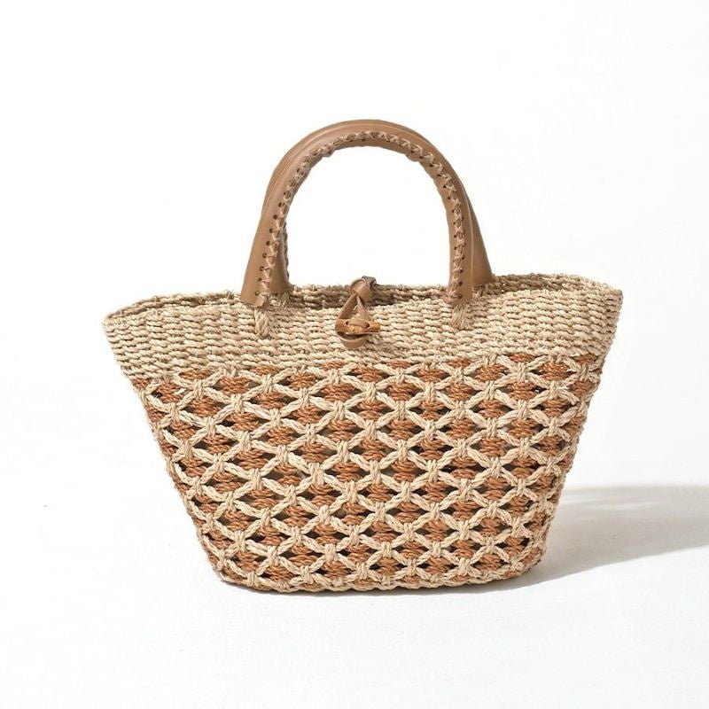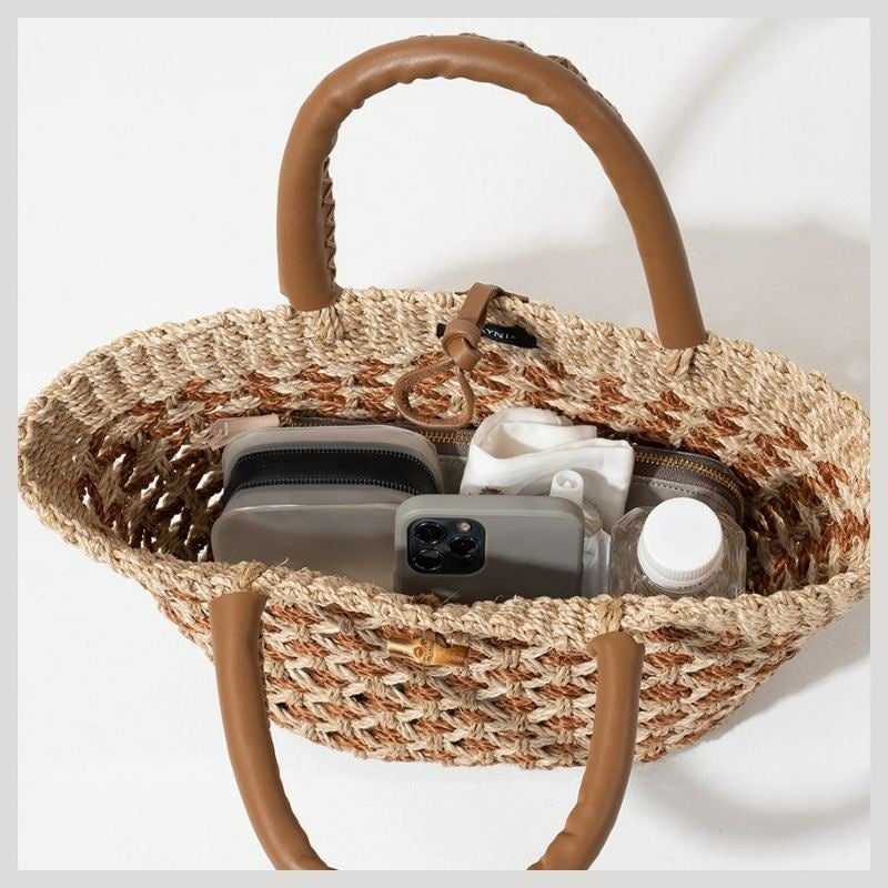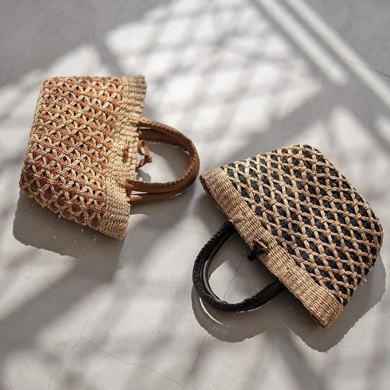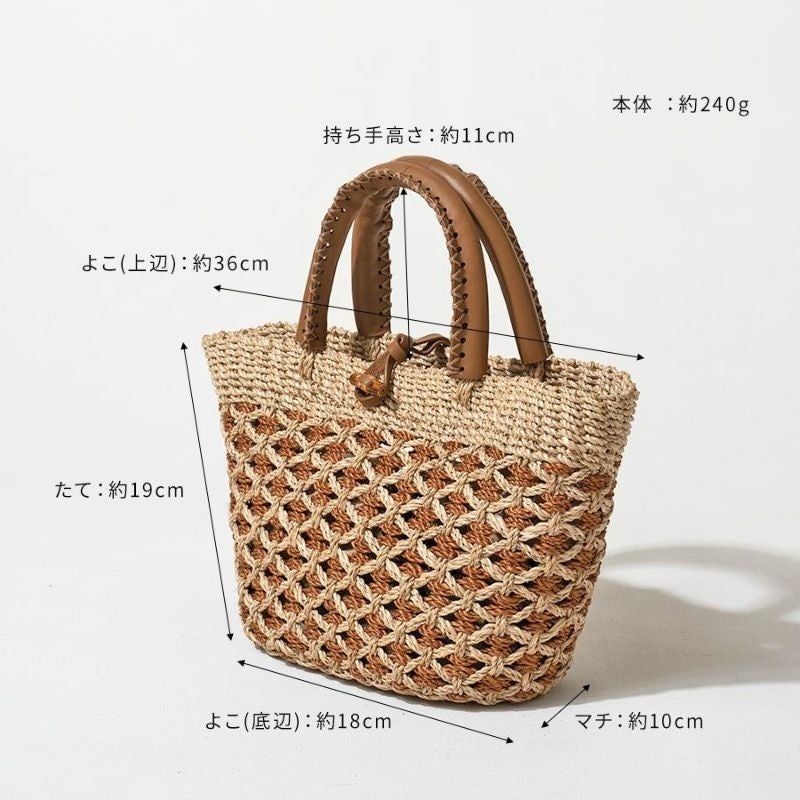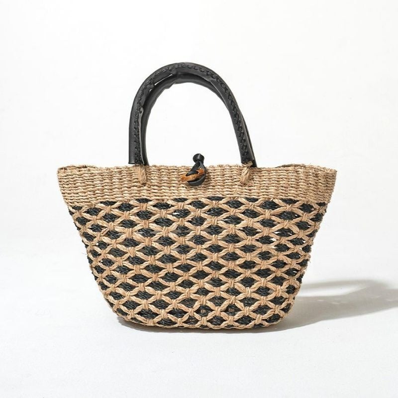 絶妙に計算されたナチュラルカラーとブラック、ブラウンの組み合わせは、大人の女性が持つのにふさわしい上品さ。デザイン性も品質もどちらも叶えたかごバッグです。