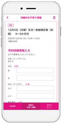 今回、沖縄市が提供を開始する「オンライン予約サービス」は、自治体の実施する一部事業などの予約をオンラインで実施できるサービスで、『母子モ』の予約ページから、利用希望日時の選択や、氏名、連絡先など必要事項を入力することで、24時間どこからでも予約が可能となります。今回、受付までの待ち時間の減少を図ることを目的とし、乳幼児健診の受診予約に本サービスを活用します。11月1日(火)からは、母子(親子)健康手帳交付のオンライン予約も開始します。