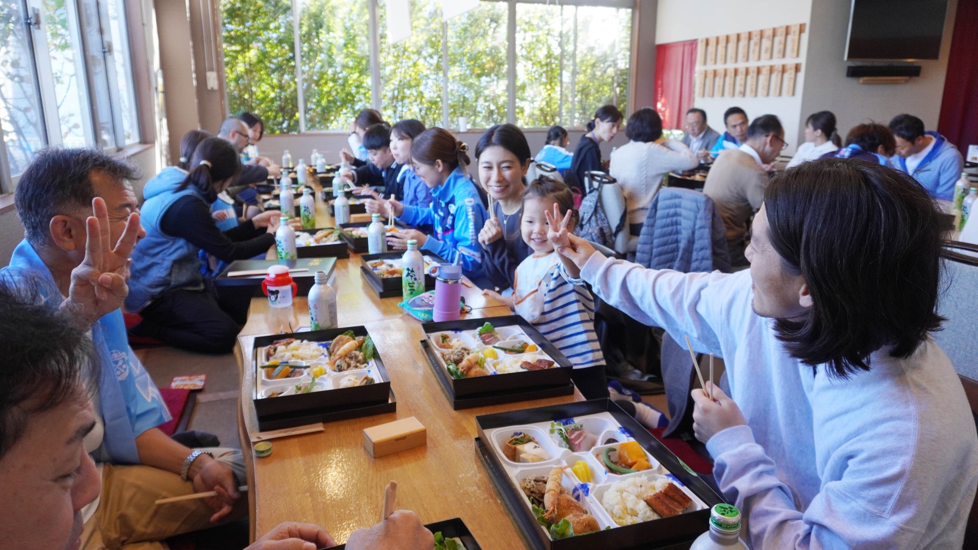 磐田市の地場産品を使った昼食を食べながら、先輩移住者「いいわたし暮らし応援団」と交流しました。参加者からは「磐田に住んでよかったところはどこですか」「ジュビロ磐田を身近に感じられるのはどうですか」などの質問が上がりました。また、女子サッカーなでしこリーグ・静岡SSUボニータの選手2名(移住者)も参加しました。
