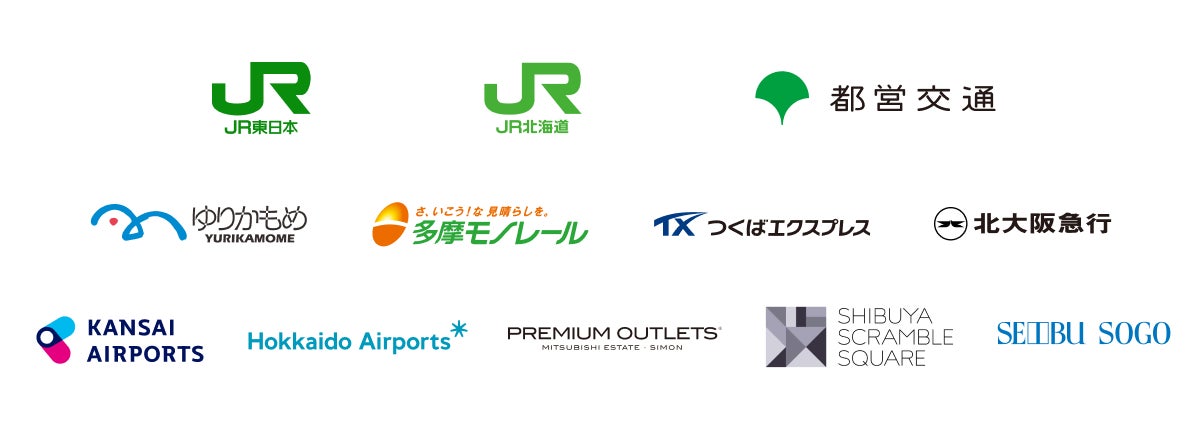 本サービスは、以下の6社の企業・団体との連携からスタートします。今後、全国の主要交通・商業施設への拡大を予定しています。