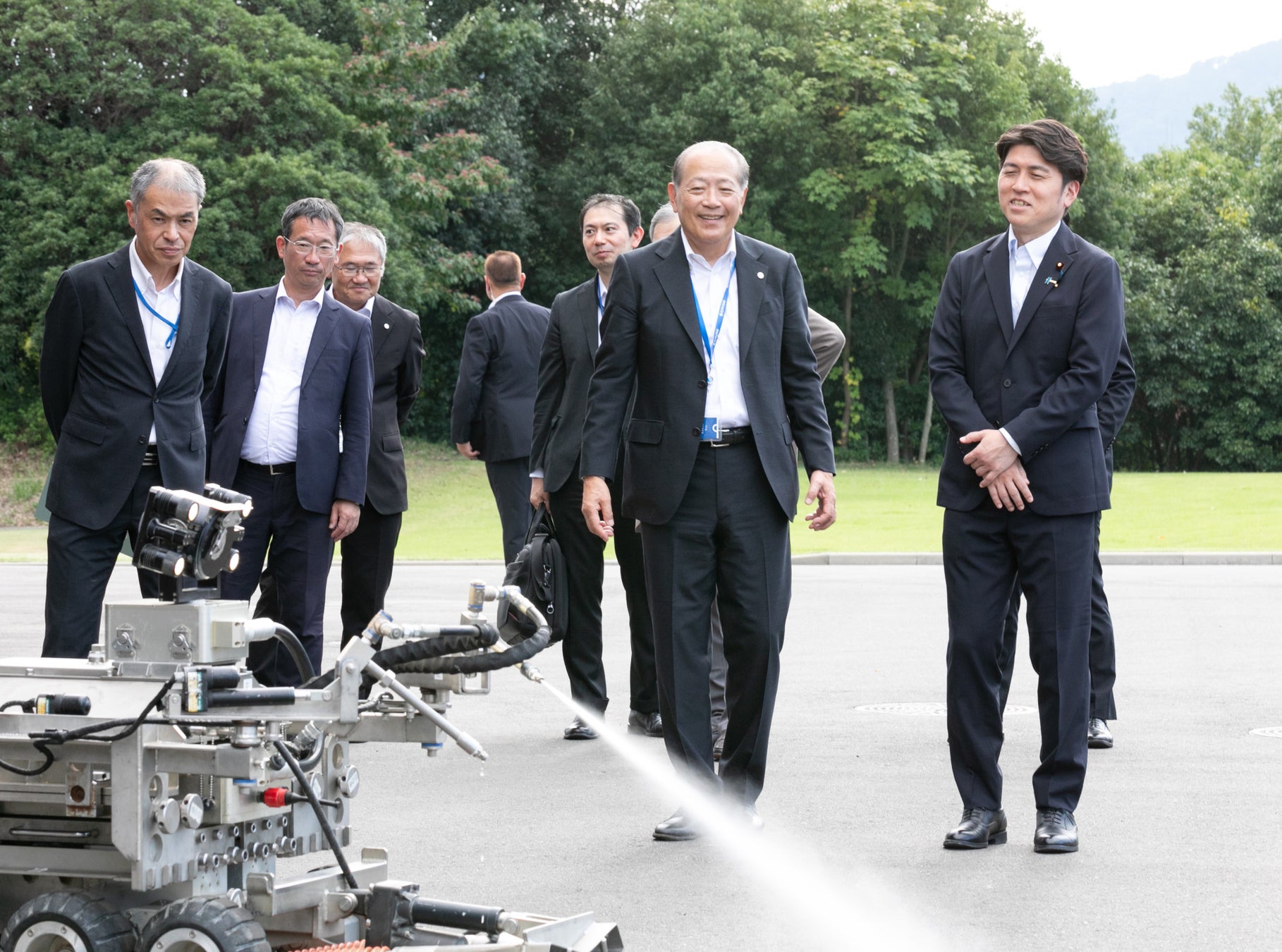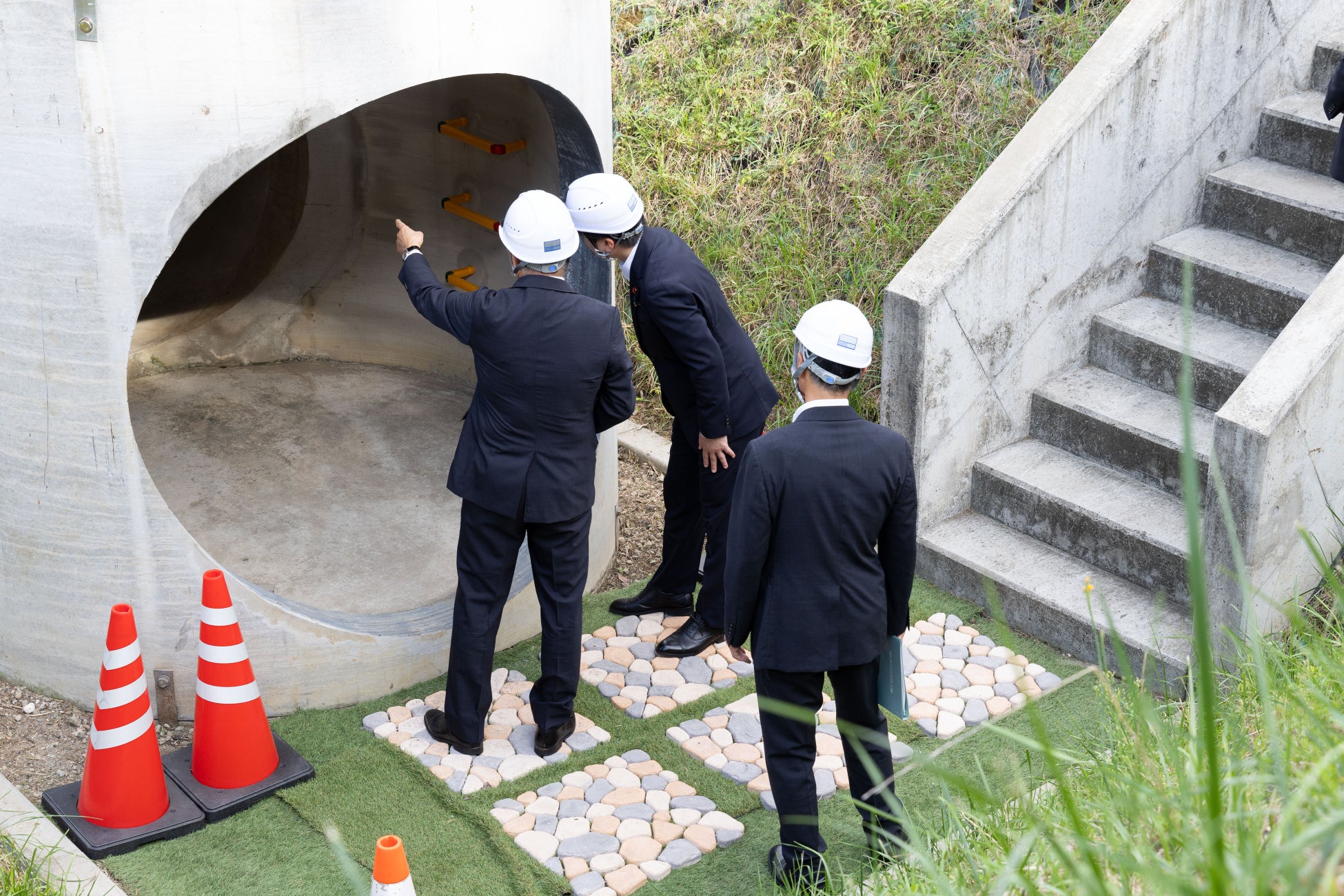 視察に際し、当社代表取締役社長の長谷川健司より、下水道分野におけるDXの更なる推進の必要性、ならびに現場作業員の安全確保に向けた取り組みの重要性について説明を行いました。