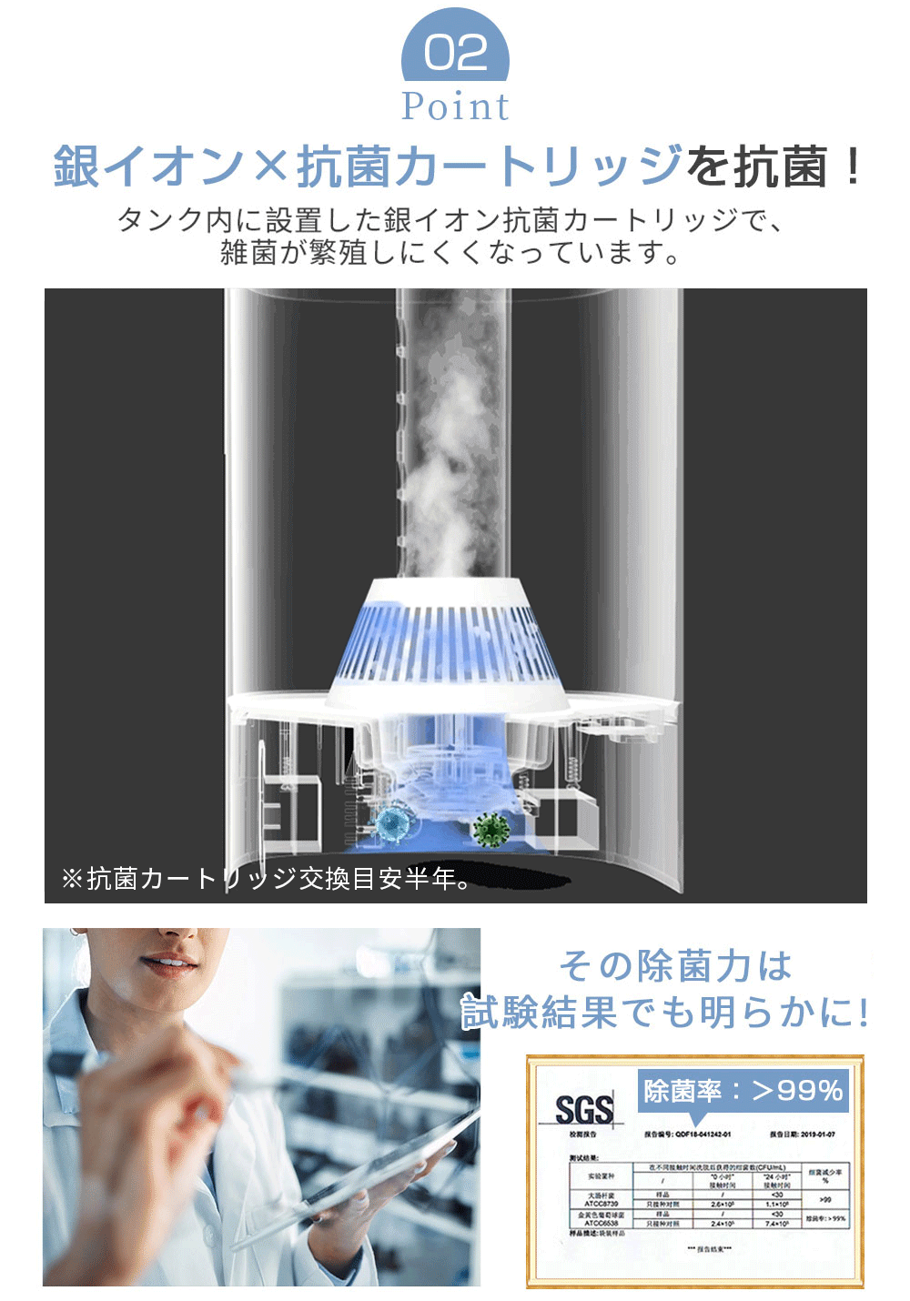 【POINT1■Ag+抗菌フィルター付きで99%抗菌】