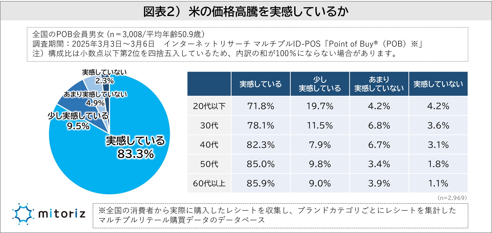 9割以上が米の価格高騰を実感しており、年代が上がるほどより強く実感