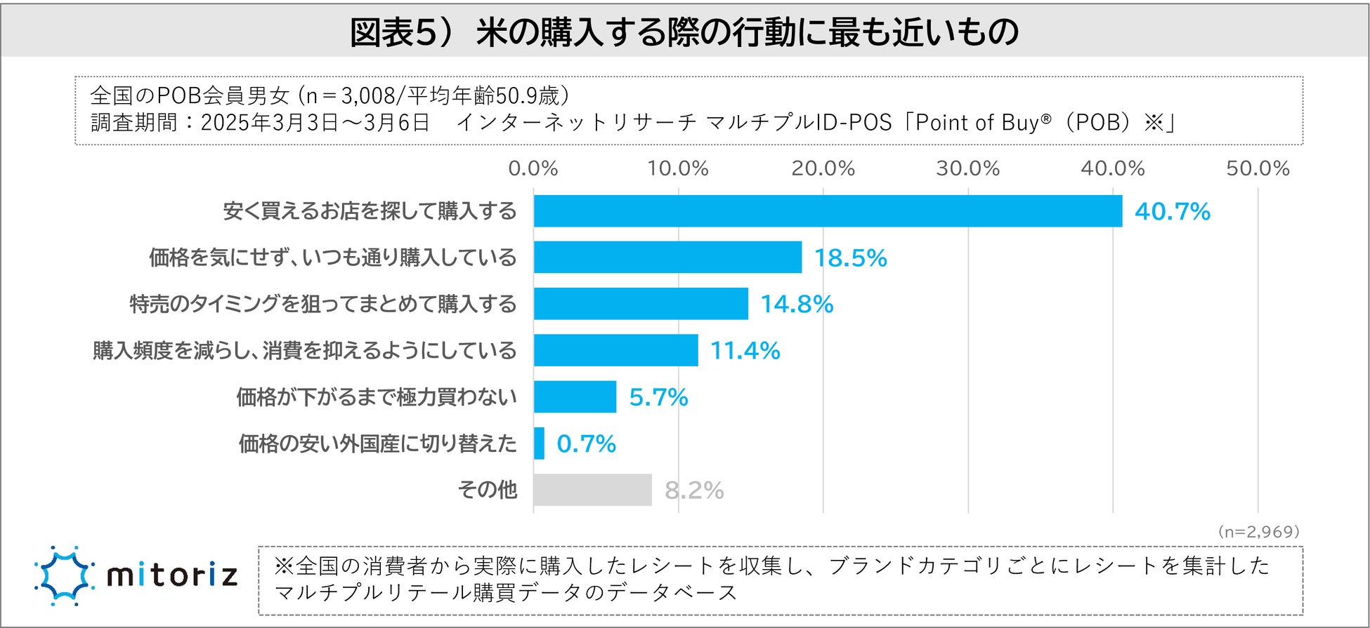 米の購入は「安い店を探して」が40.7%で最多も「価格を気にせず」が18.5%で2番目に続く