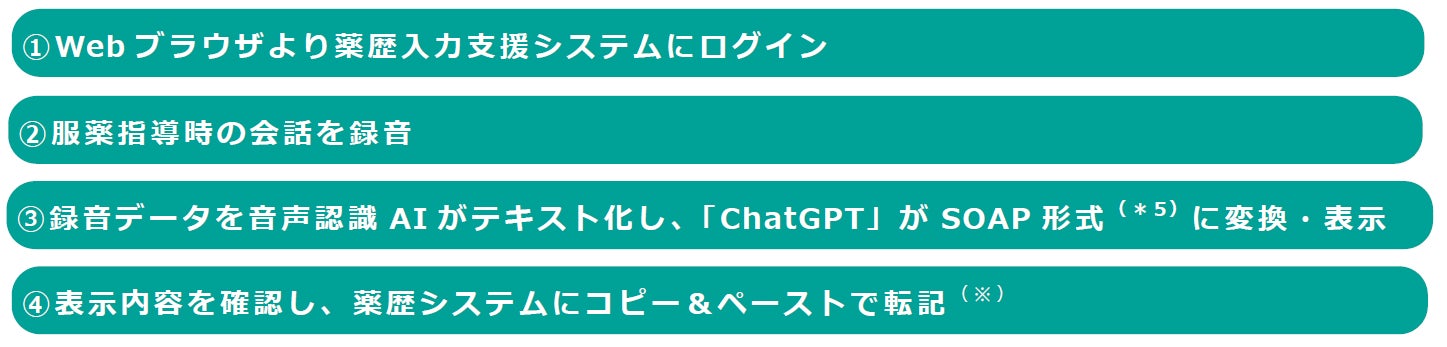 当社はウィーメックスの「ChatGPT」活用実証実験に賛同し参画します。当社は、中期経営計画にて「臨床から臨生へ」、つまり「治療からケアへ」のスローガンを掲げ「対物から対人へ」の進化が求められる薬局業界において、薬局薬剤師の業務を「ケアに向けて開く」ことを目指しています。