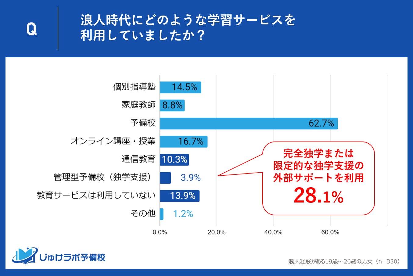 28.1%の浪人経験者は独学を選択