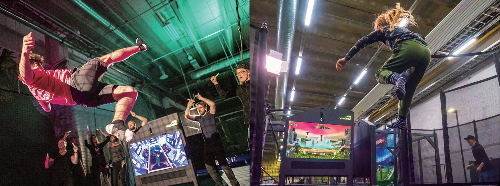 フィンランドのVALO MOTION社が開発した次世代トランポリンゲームであり、ディスプレイとカメラを活用してプレイヤーの動きをゲーム画面に反映させます。2台を使用すると世界初の対戦型トランポリンゲームが可能で、専用アプリ「ValoApp」を通じて世界大会にも参加できます。子どもから大人まで楽しめる魅力的なアクティビティです。日本でもアミューズメント施設などで導入されています。