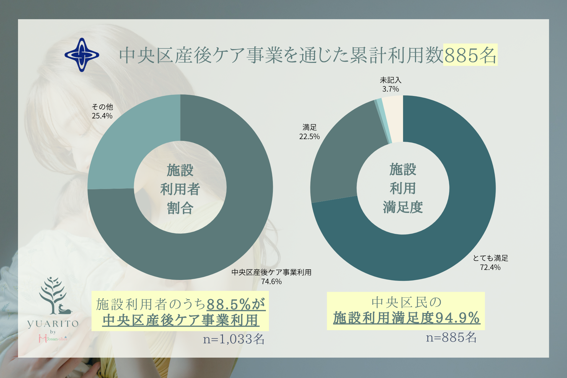 中央区産後ケア事業を通じた利用は累計885名(施設利用者累計の85.7%)、満足度94.9%