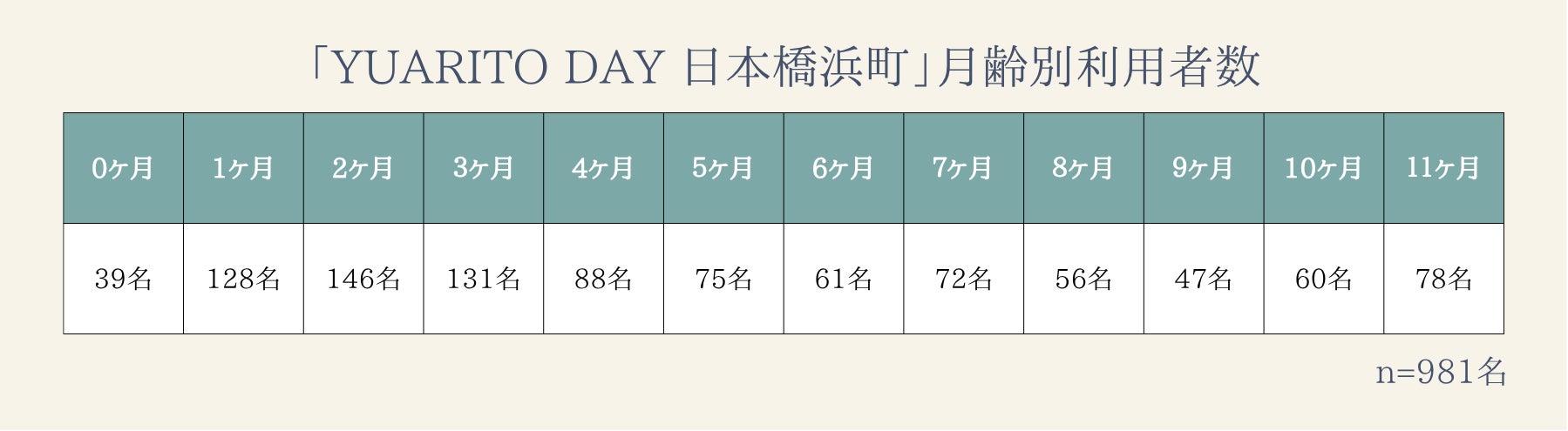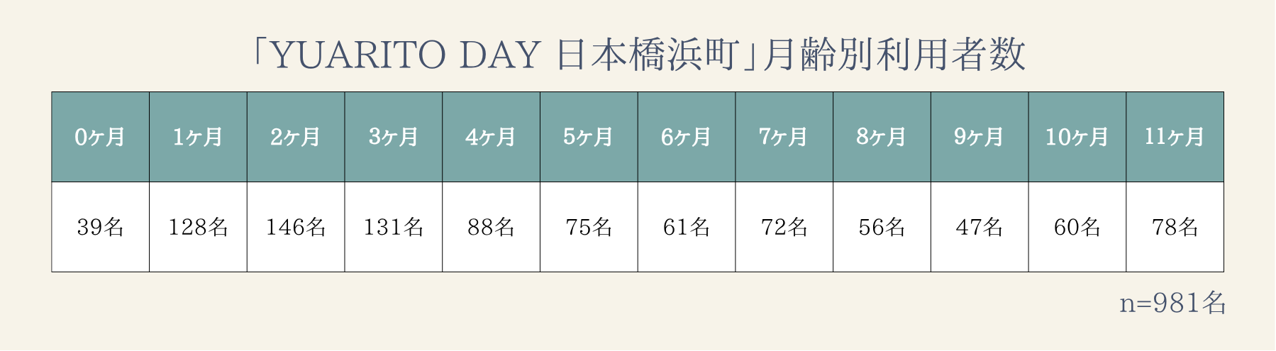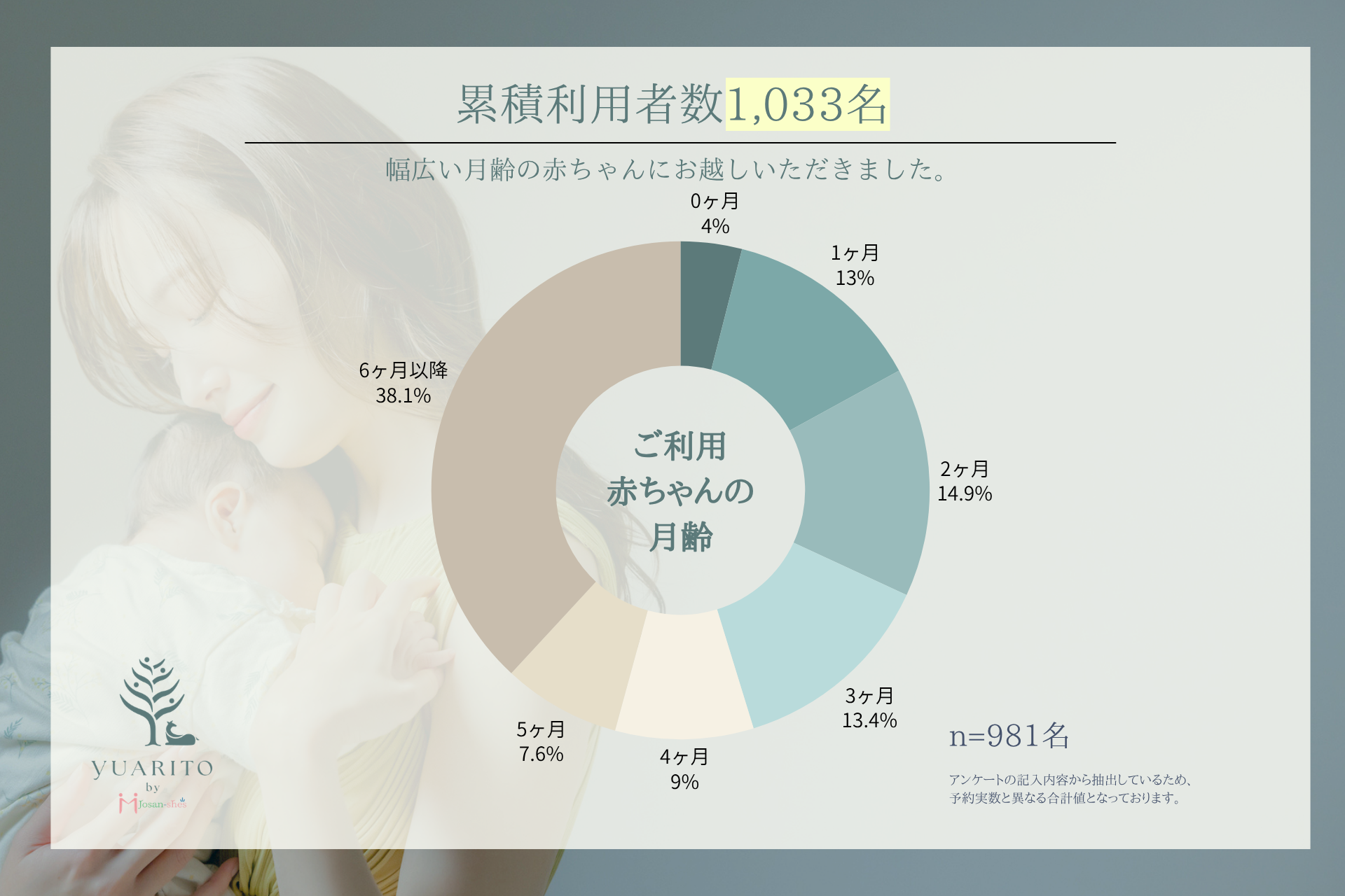 施設の累計利用者数1,033名、幅広い月齢の赤ちゃんと共にご利用いただきました