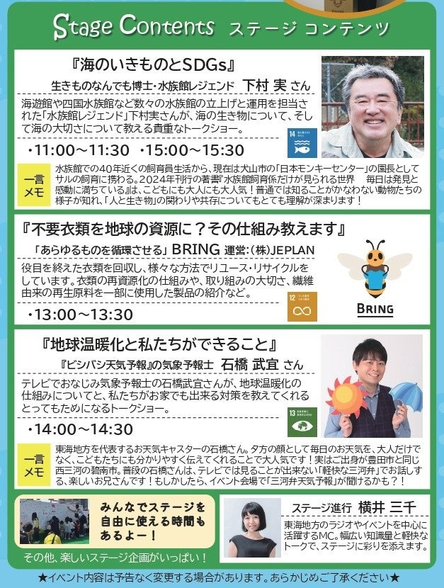 ・天気予報士の石橋武宜(いしばし たけのり)氏を招いた地球温暖化について考えるトークショー など
