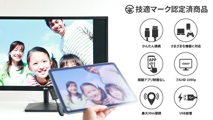 「ミラリン」の最大の特徴は、その接続の簡単さです。専用のドライバを必要とせず、アダプターを機器に接続するだけで使用可能。内蔵されたWi-Fiが起動し自動でペアリングを開始し、最大約30m離れた場所からでもWi-Fi無線でスムーズに接続が可能です。これにより、家族や友人との映画鑑賞、ゲーム、ビデオ通話など、様々なシチュエーションで大画面を楽しむことができます。