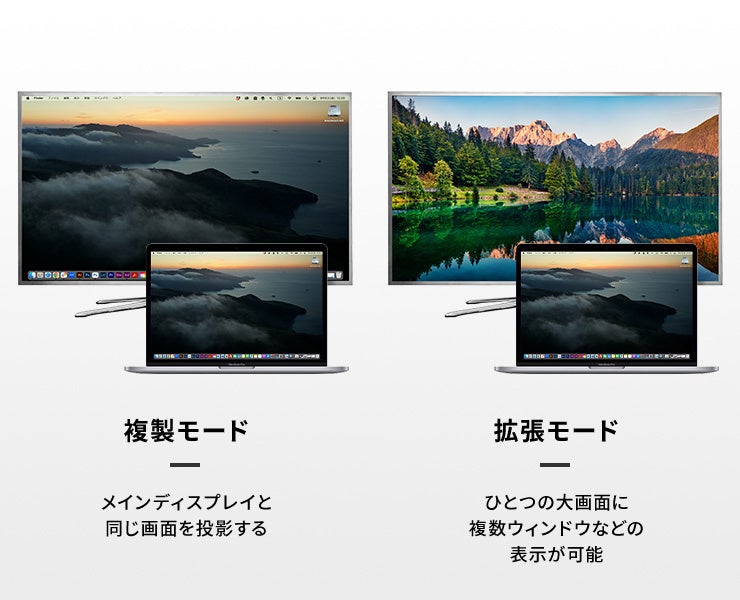 「複製モード」と「拡張モード」の2パターンで、シチュエーションに合わせた使い方ができます。