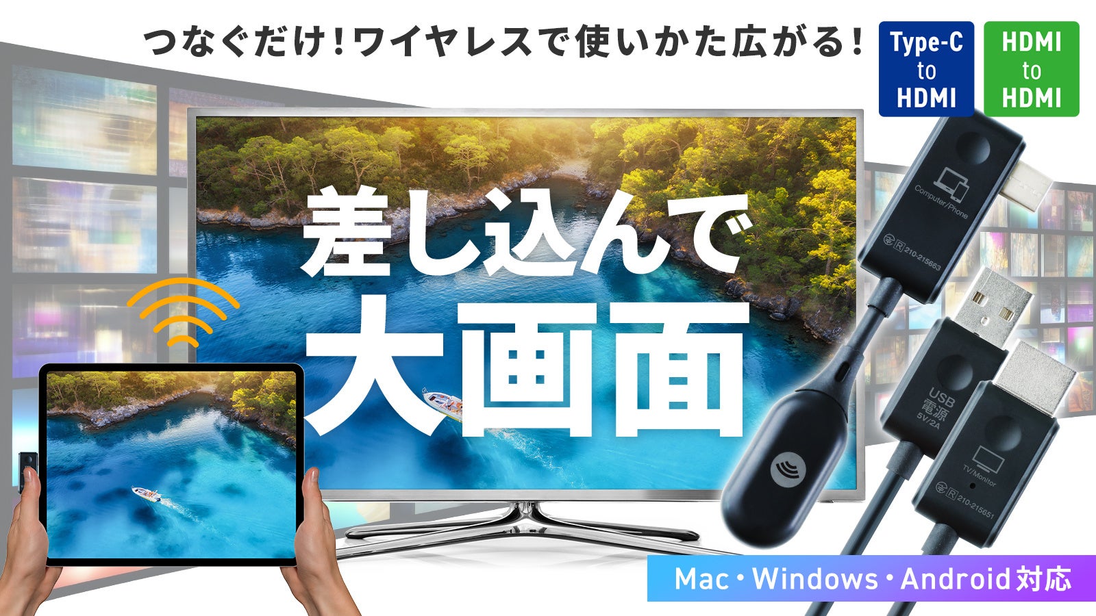 大画面に手軽にミラーリングできるコンパクトで使いやすいワイヤレスHDMIアダプター