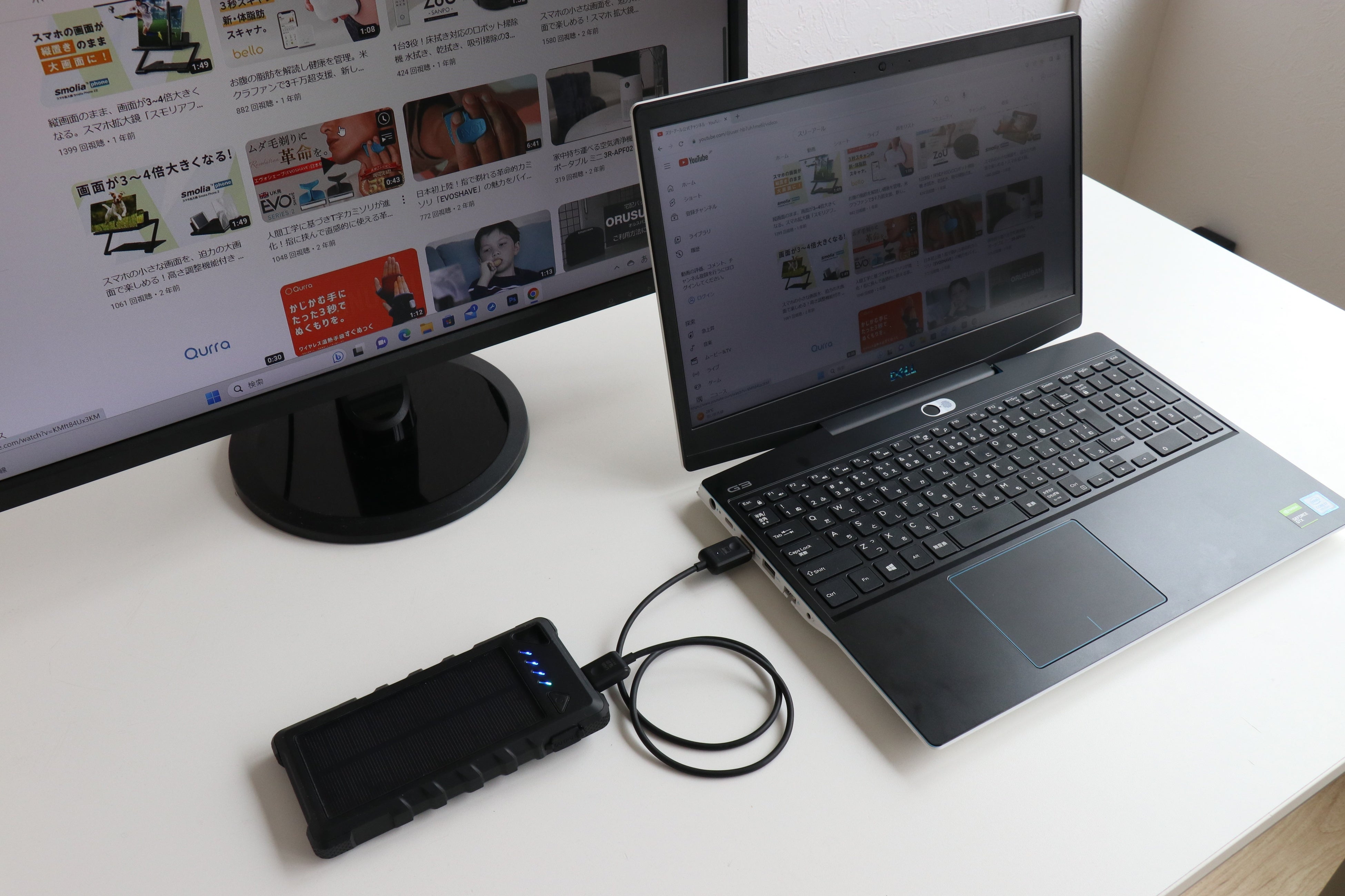 USB ACアダプターやモバイルバッテリーからの給電が可能です。ノートPCのUSBポートに接続して使用することもできます。