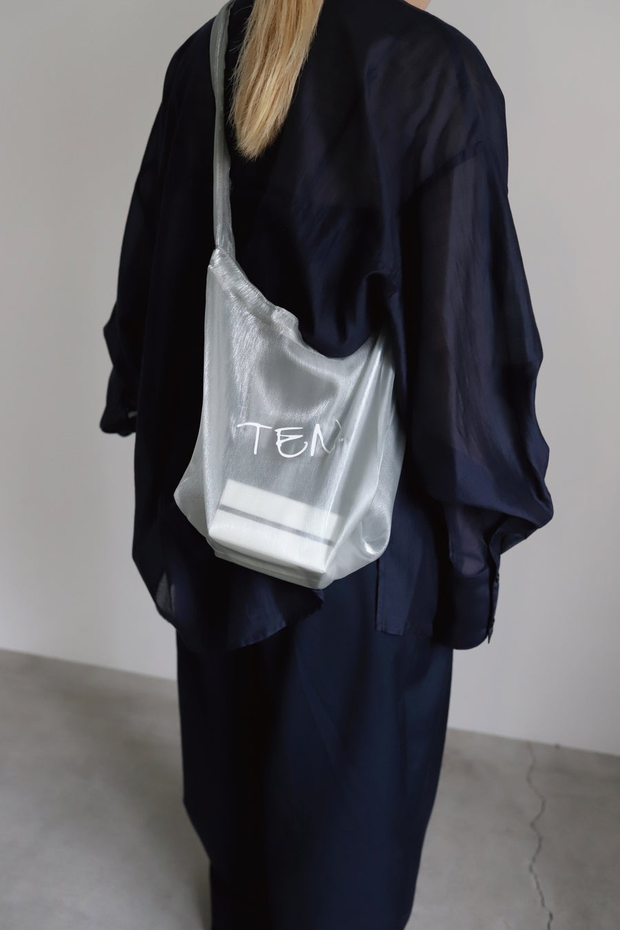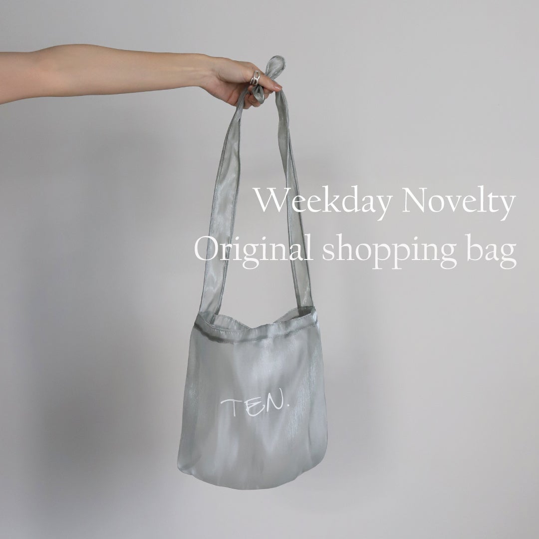 これからの暖かい季節に、ファッションアイテムとしてもご利用いただけるグレイッシュブルーのオーガンジー素材を採用したオリジナルショッパー。