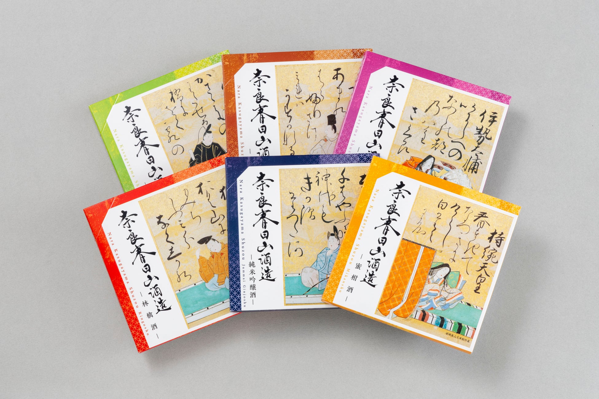 化粧箱のデザインは2シリーズあります。一つは嵯峨嵐山文華館が所蔵している小倉百人一首の絵柄で、100首のなかから、奈良県を舞台に詠んだ和歌などゆかりのある6首を採用しました。もう一つは、奈良公園で長年愛されたニホンジカ「ロク」をモデルにしたデザインです。ロクを9年間追いかけたカメラマンが撮影した作品から6品を選びました。お酒を選ぶ際に、パッケージでも楽しんでいただけるようにデザイン性を高めました。