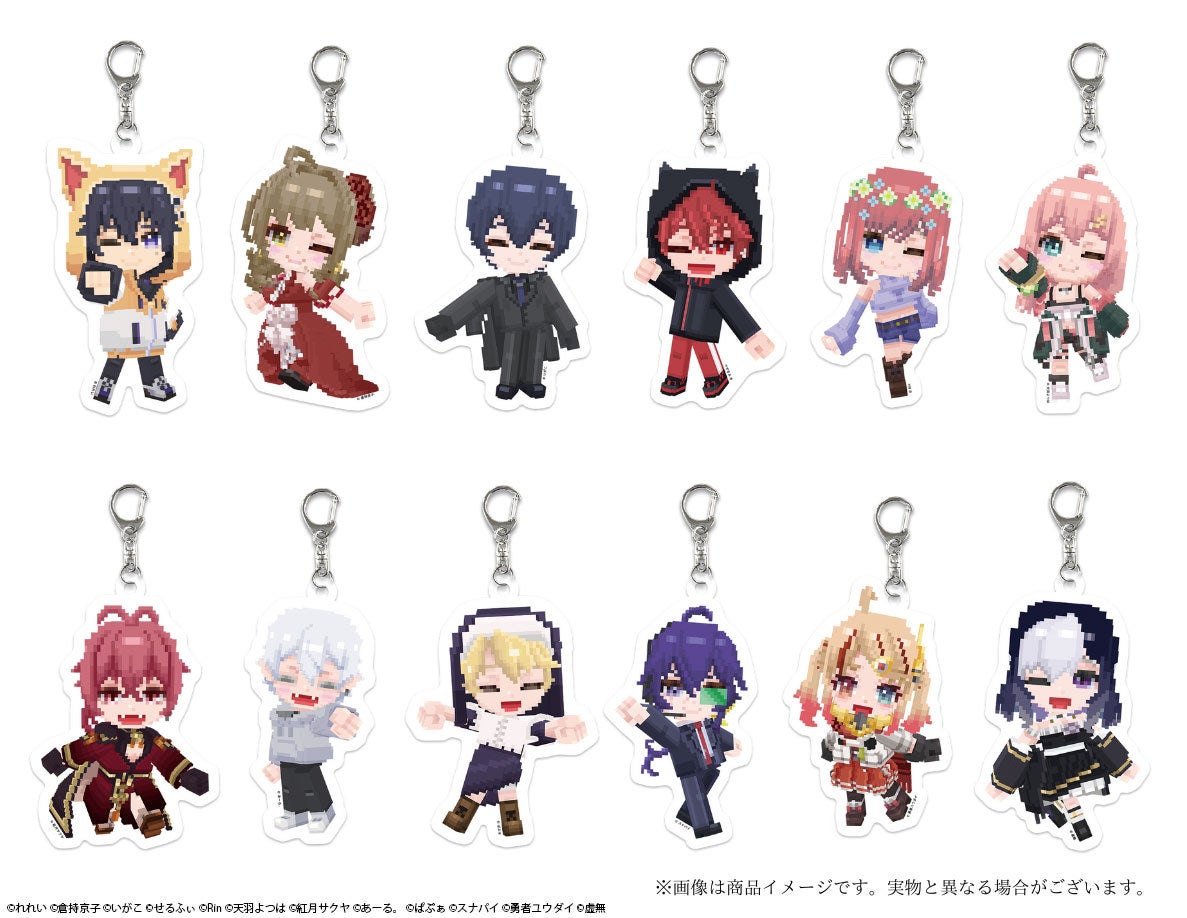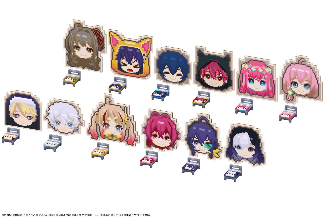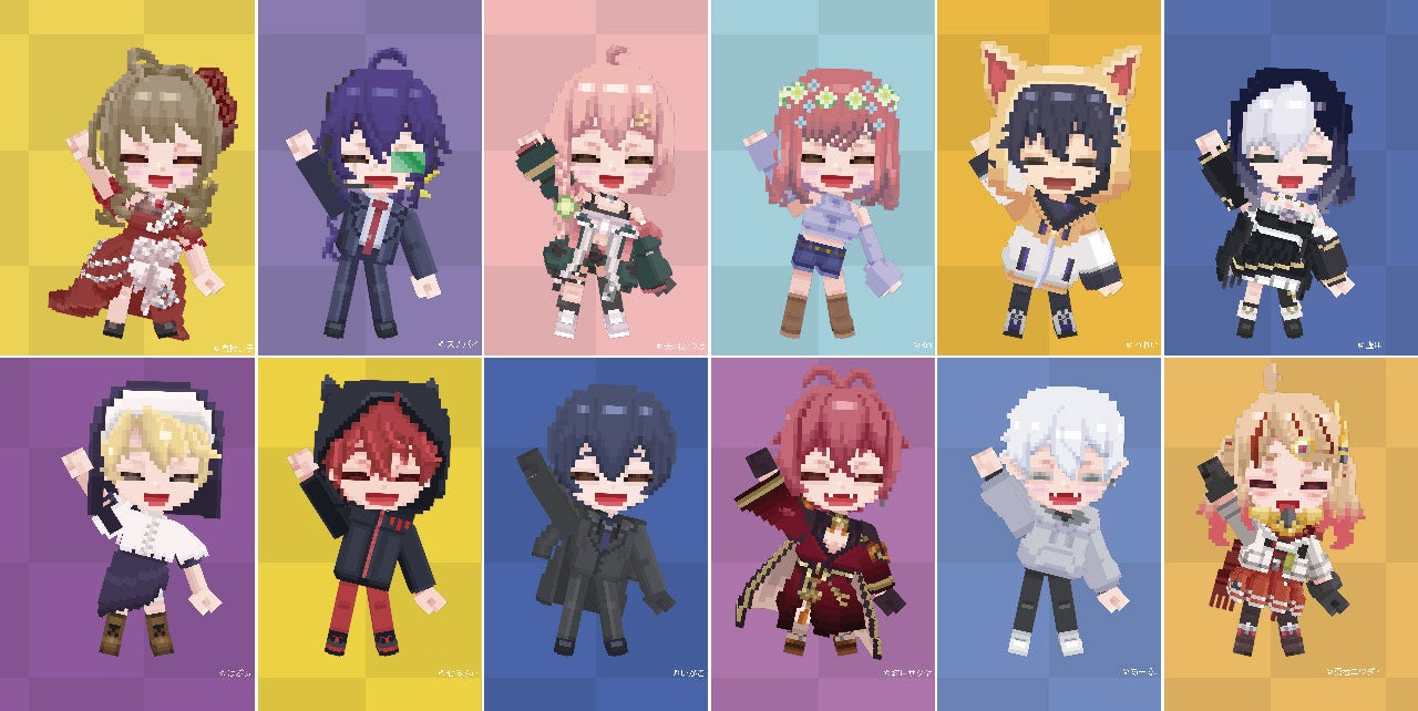 コラボワールドには12人のアバターが登場し、缶バッジやアクリルキーホルダーなどのリアルグッズやゲーム内に設置できる限定の家具を販売しています。