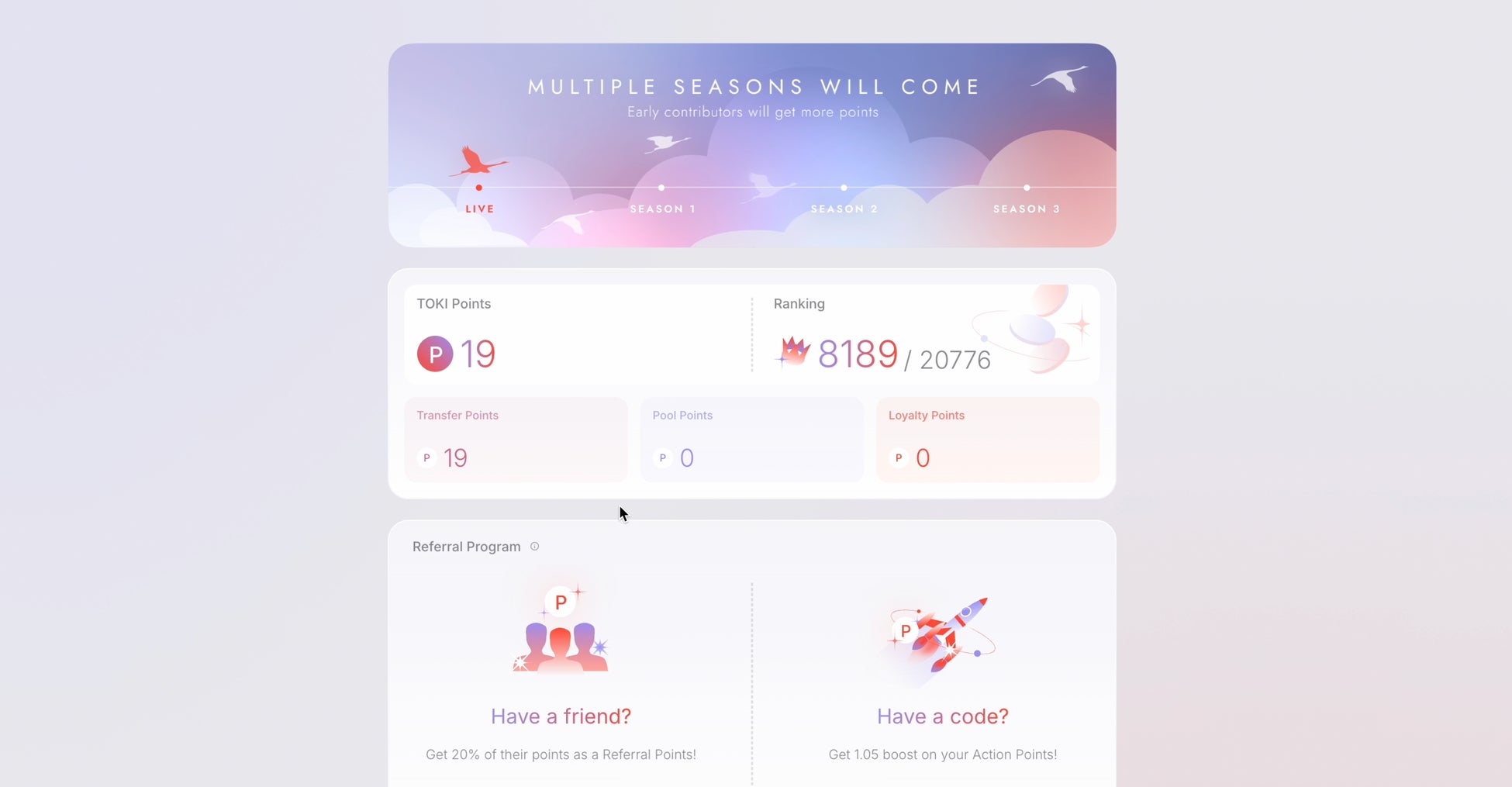 特典1の保有者の中で、キャンペーン期間中にTOKIにおいて$100以上のブリッジを行ったユーザーには、500 TOKIポイントが付与されます。