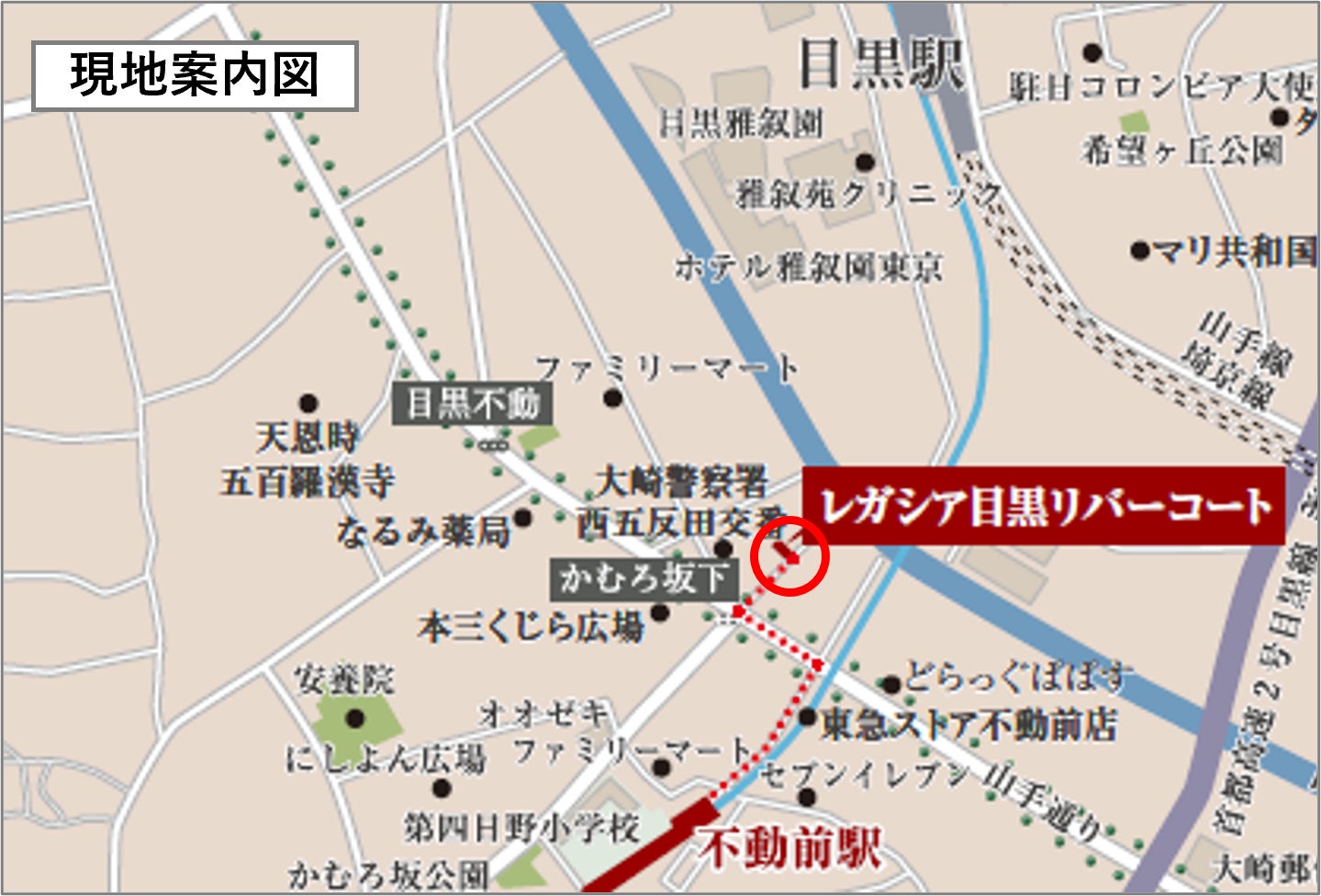 東急目黒線「不動前」駅 徒歩4分/JR 山手線・東京メトロ南北線・ 東急目黒線・都営三田線「目黒」駅 徒歩12分/都営浅草線「五反田」 駅 徒歩11分/JR 山手線・東急池上線「五反田」駅 徒歩13分 |