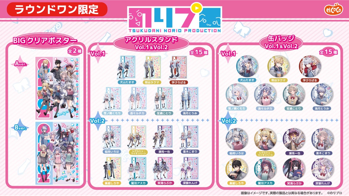 人気Vtuberが所属『のりプロ』より全タレントの『アクリルスタンド』『BIGクリアポスター』『缶バッジ』が全国ラウンドワンのアミューズメント施設にて2月19日(水)より順次展開!
