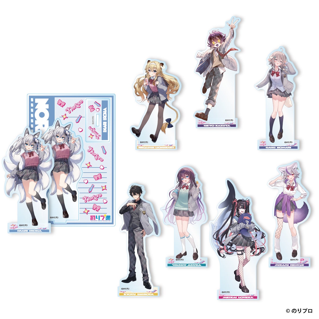 のりプロ所属の稲荷いろは、レグルシュ・ライオンハート、瀬兎一也、斎木こまり、梟雄しろや、鷲羽アスカ、冥海らぶか、深狼れんげがアクリルスタンドになってプライズ登場!