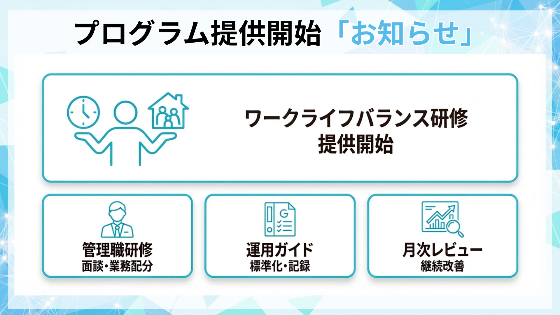 【残業・睡眠・生産性を同時に扱う】ワークライフバランス研修の提供開始(管理職運用まで支援)