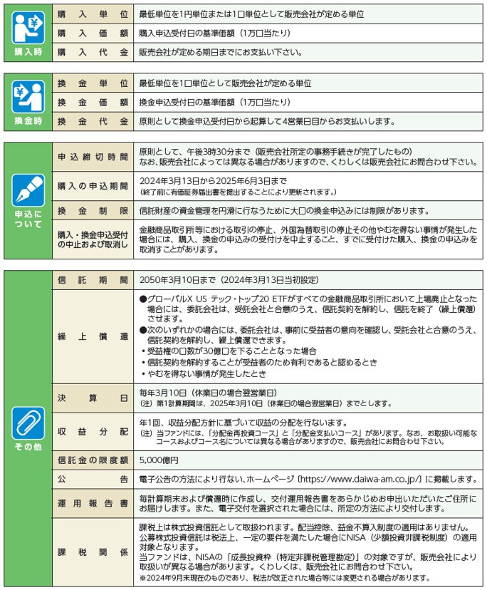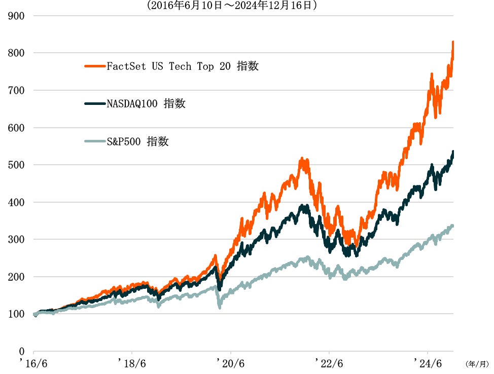 「一歩先いく US テック・トップ20インデックス」 (以下、「当ファンド」)をご愛顧賜り、厚く御礼申し上げます。当ファンドは投資初心者からのステップアップをサポートする「一歩先いく」シリーズの第一弾ファンドとして2024年3月13日に設定され、2024年12月12日の純資産総額が202.28億円を超え、おかげさまで200億円を突破いたしました。当ファンドは、米NASDAQ上場のテクノロジー関連銘柄20社で構成される「FactSet US Tech Top 20指数(配当込み、円ベース)の動きに連動することをめざして、「グローバルX US テック・トップ20 ETF(銘柄コード:2244)」に投資します。引き続き「一歩先いく US テック・トップ20インデックス」をご愛顧賜りますよう、よろしくお願い申し上げます。