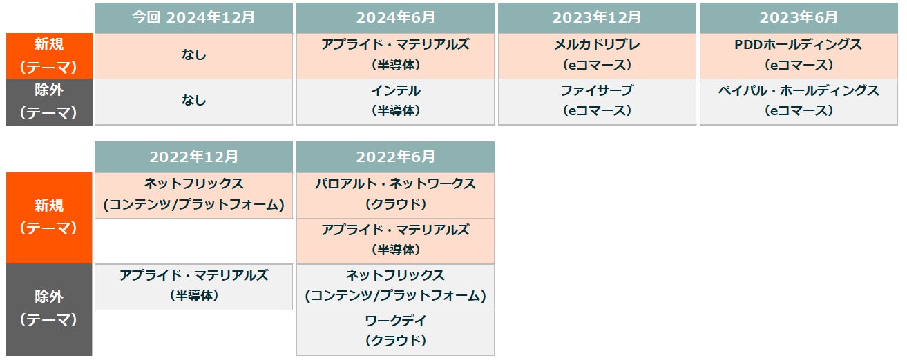 2024年12月の定期リバランスに伴う新規採用・除外銘柄はございません。