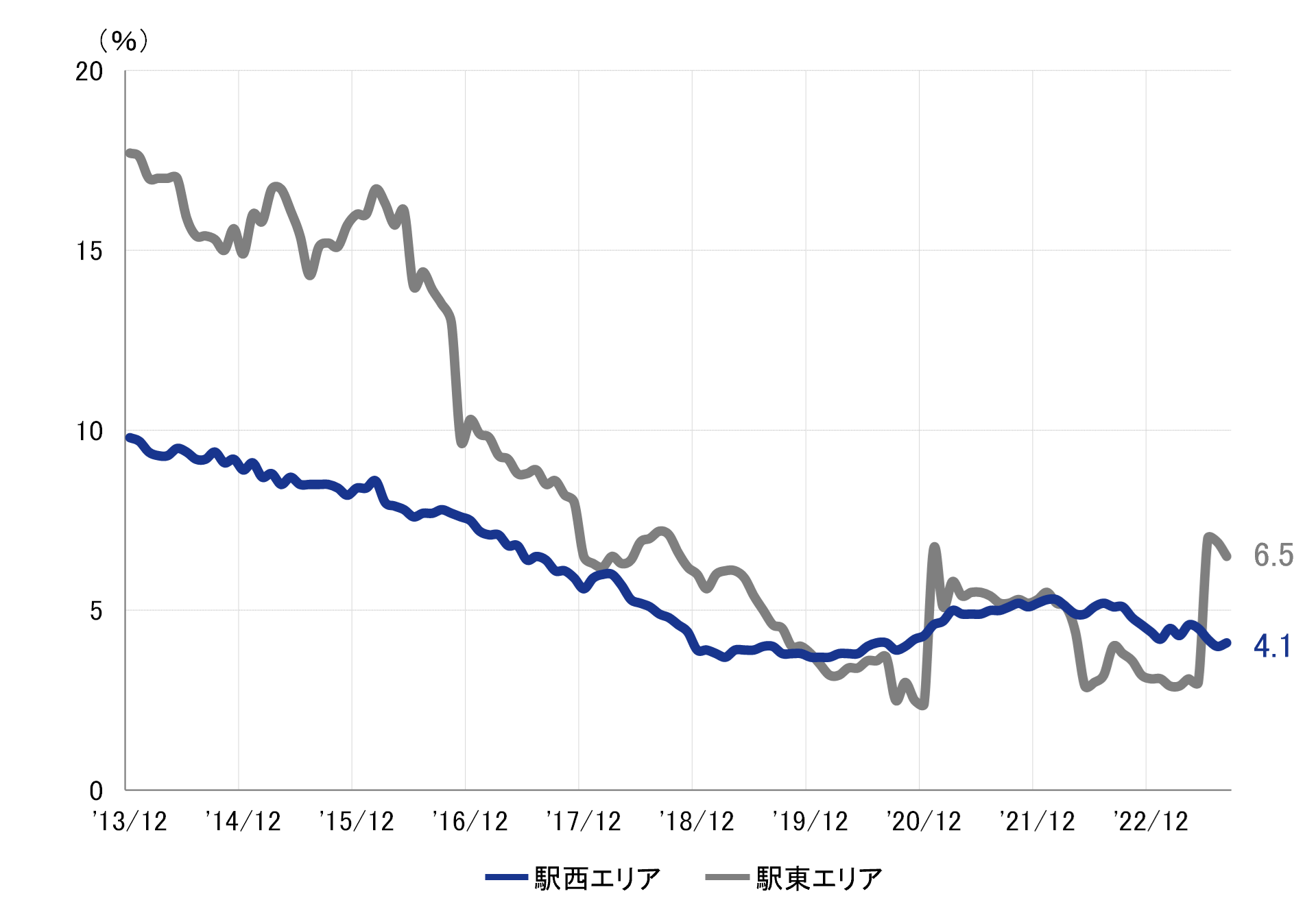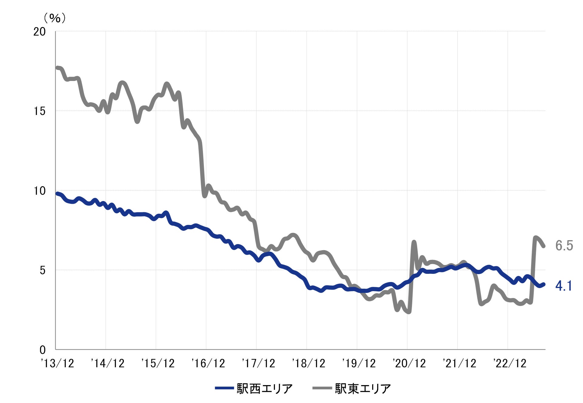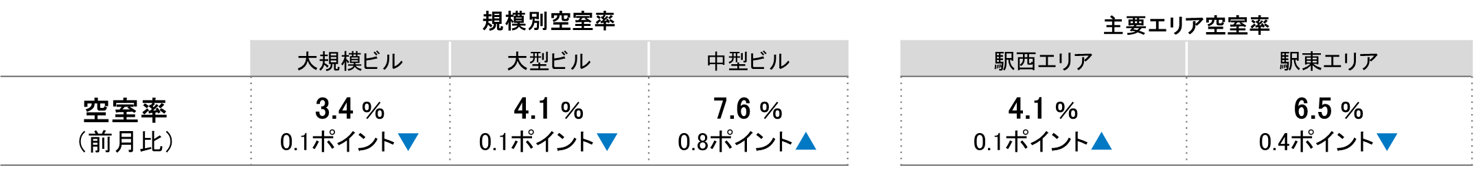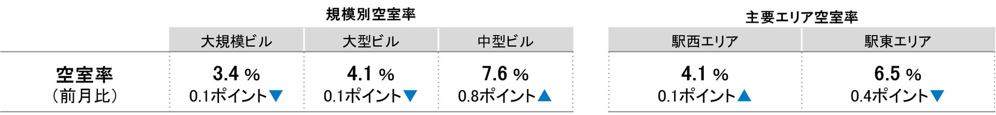 全規模ビル 主要エリア 空室率:「駅東」2ヵ月連続で低下