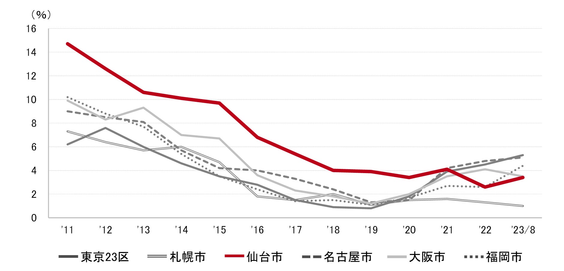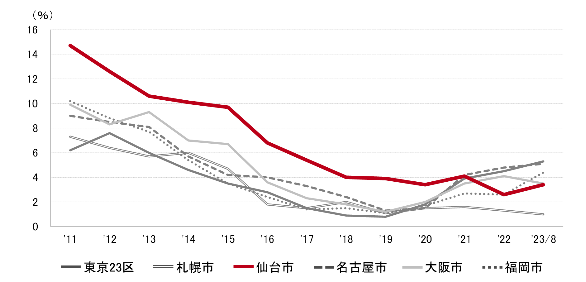 仙台市 全規模ビル 主要エリア 空室率
