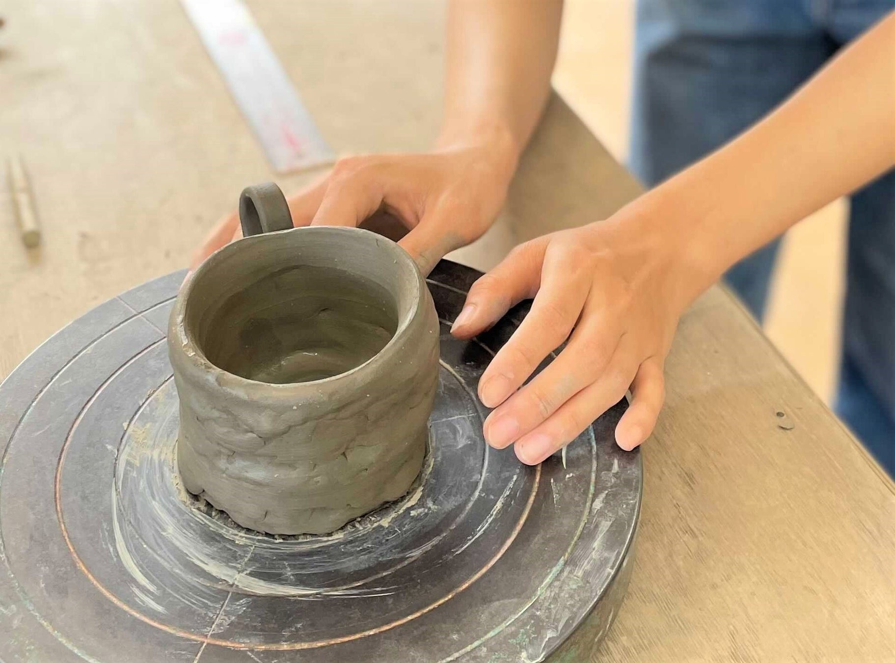 オリジナルカップまたは湯呑みを作る陶芸体験です。仕上げには、当館の温泉成分「湯の華」をアクセントにしています。