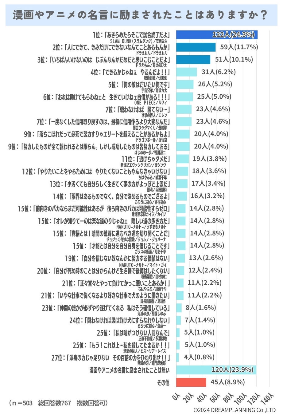 今回は「励まされたマンガやアニメの名言」について、独自調査の結果を発表します!