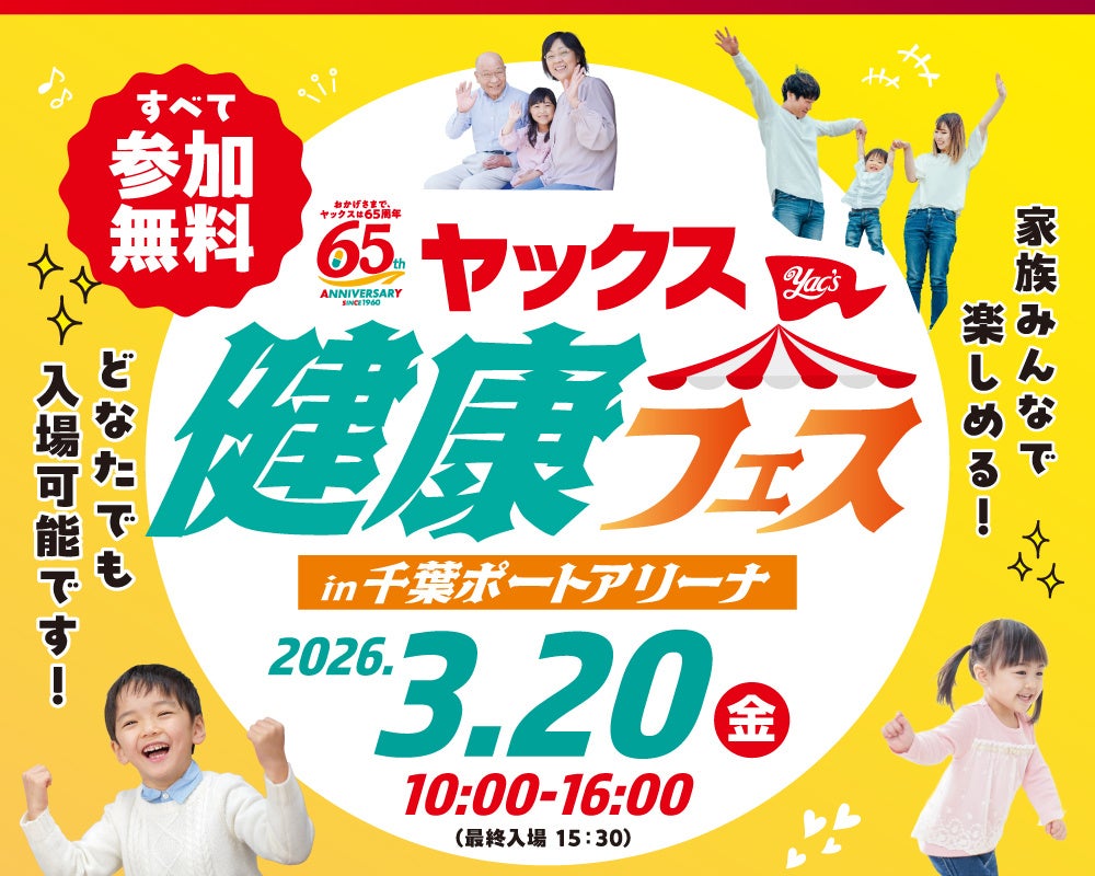 2026年3月20日(金)に千葉ポートアリーナで開催される、株式会社千葉薬品さま主催のイベント「ヤックス健康フェス」に、ちばぎん商店と千葉銀行「ちばの住まいコンシェルジュ」が共同出展します。