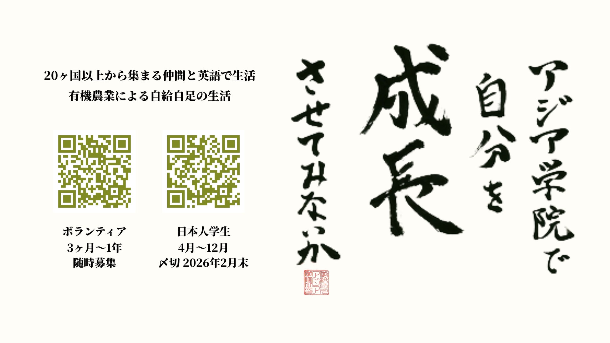 アジア学院で自分を成長させてみないか ― 来たれ、2026年度 日本人学生!