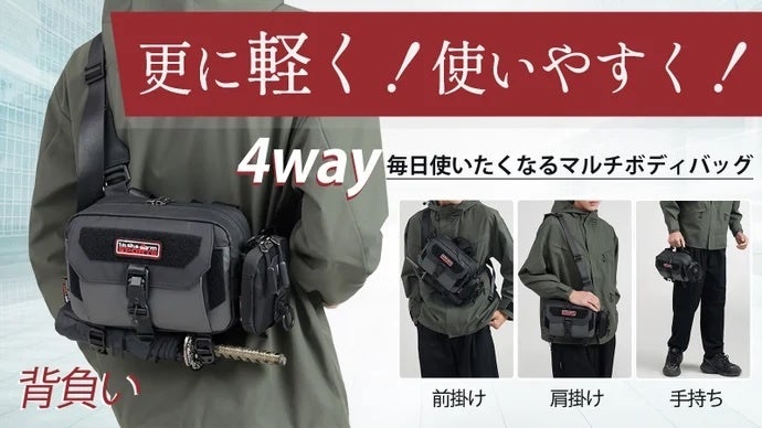 全方位死角なし、更に軽く!使いやすく!【軽量・高機動4WAYボディバッグ】がMakuakeにて先行販売開始、即日目標金額を達成しました