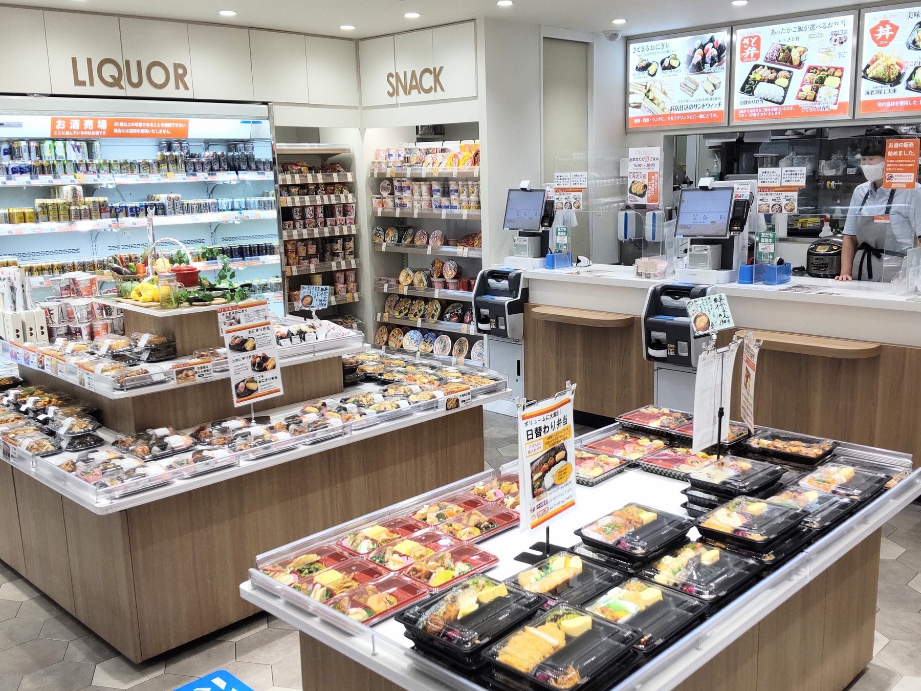 それぞれの時間帯に合わせて、およそ100種類の商品をご用意して、お客様のご利用をお待ちしております。