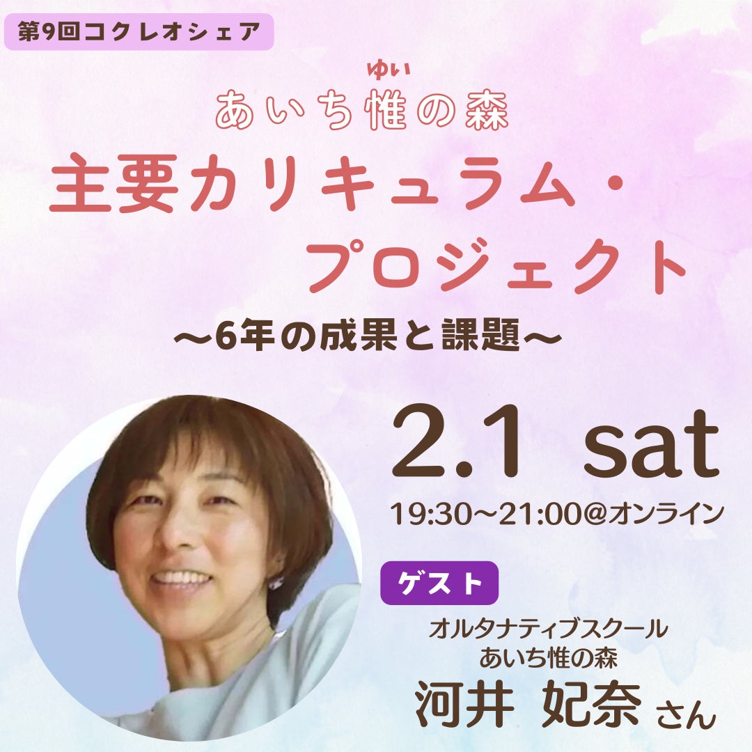 名古屋市緑区にあるオルタナティブスクール あいち惟(ゆい)の森のスタッフから、開校から6年を振り返ってのお話をお聞きします。オルタナティブスクールや学びの場づくりに関心のある方にオススメです。