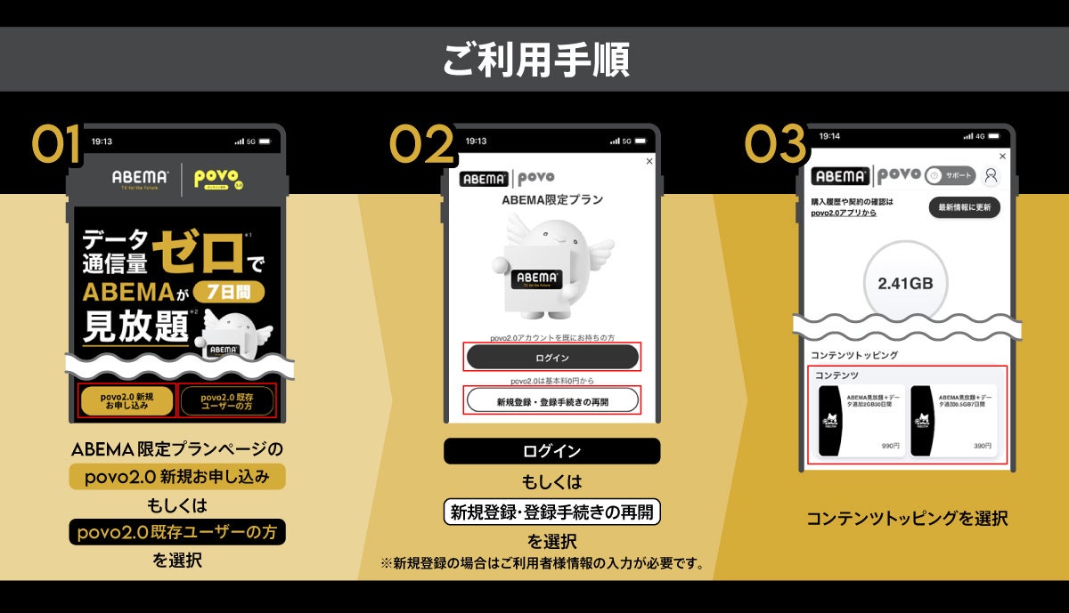 povo、「ABEMA」のデータ使い放題プランを提供開始