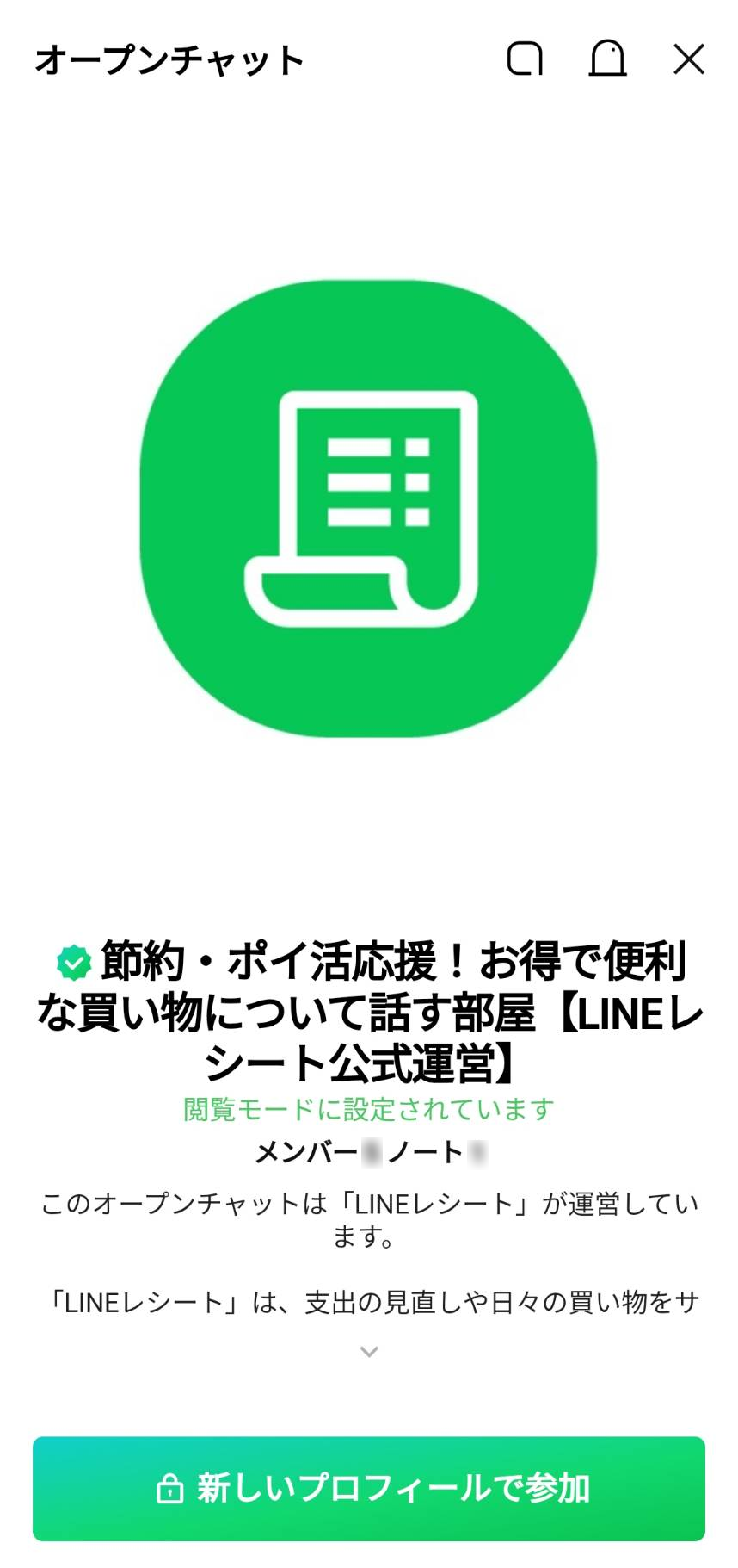 期間内に、「オープンチャット」の「節約・ポイ活応援!お得で便利な買い物について話す部屋【LINEレシート公式運営】」に参加