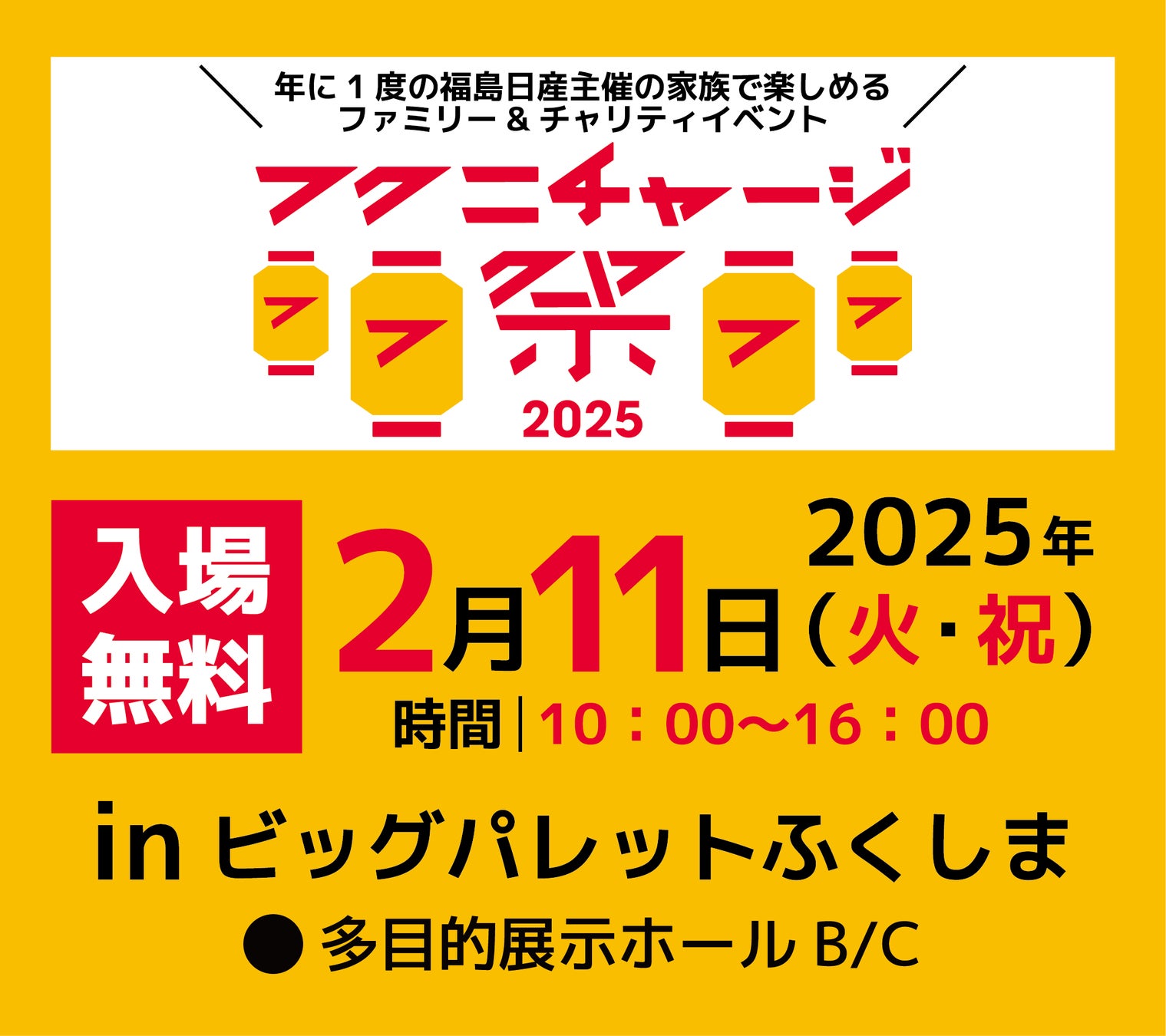 いよいよ開催!福島日産PRESENTS チャリティ&ファミリーイベント「フクニチャージ祭2025」 2月11日(火・祝)はみんなでビッグパレットふくしまへGO!